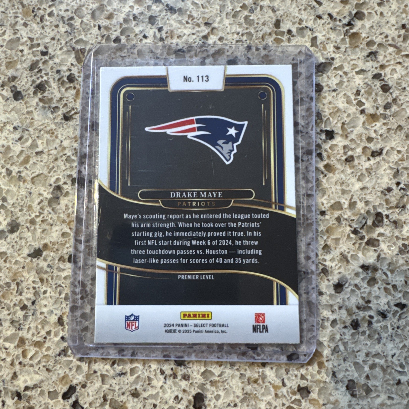 The product is a 2024 Panini Select football trading card featuring rookie player Drake Maye from the New England Patriots. This specific card is part of the Concourse set, with card number 27, and is a base parallel variety. As a part of the Select Rookie Lot, this card is a valuable addition for collectors interested in NFL trading cards from the 2024 season. With the renowned Panini manufacturer behind it, this card showcases the up-and-coming talent of Drake Maye in the world of football trading cards.