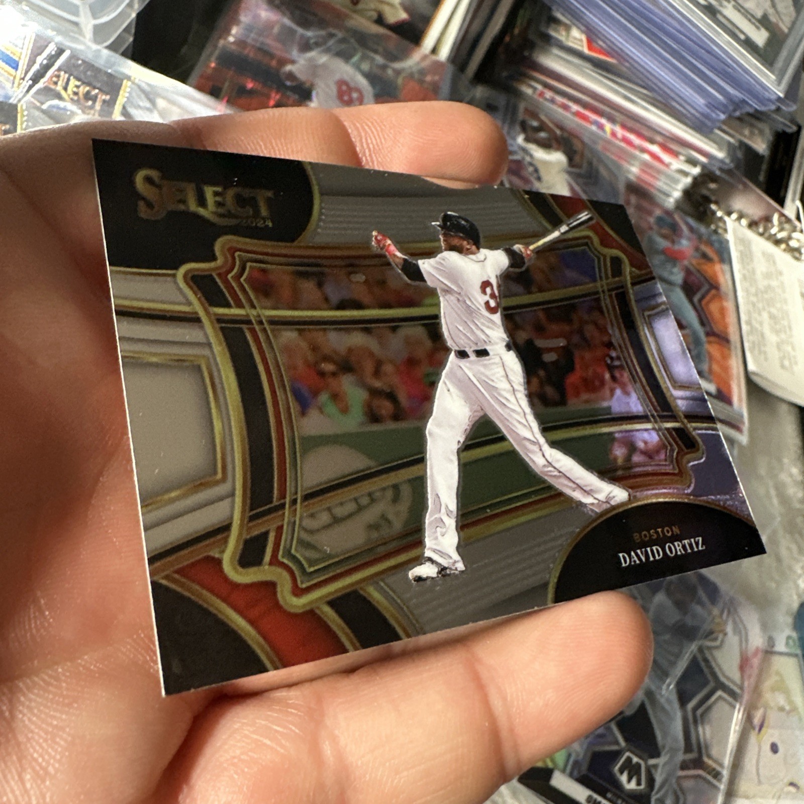 The 2024 Panini Select David Ortiz Diamond Level Silver Prizm #46 trading card featuring the former Boston Red Sox player is an original, officially licensed collectible made of high-quality card stock. This sports trading card is a sought-after parallel variety with a 20 Pt. thickness, perfect for baseball fans and collectors looking to add a unique piece to their collection. Manufactured by Panini in the United States, this card showcases David Ortiz in his Major League Baseball days, making it a valuable and authentic addition to any sports memorabilia collection.