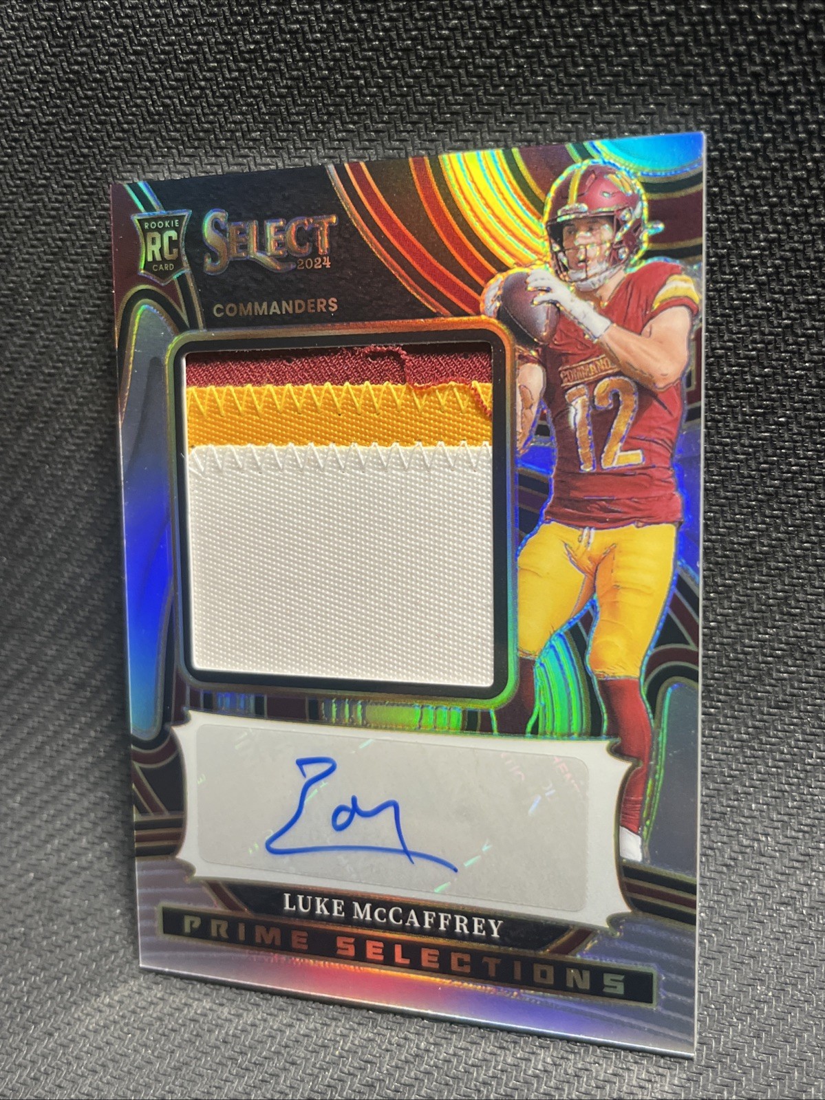 This card is a must-have for collectors—a stunning silver Prizm /99 rookie autograph of Luke McCaffrey! The sleek Select design and on-card signature make it pop, and the /99 rarity adds serious value. Perfect for any fan or investor looking for a high-quality RC with memorabilia appeal. Highly recommend!