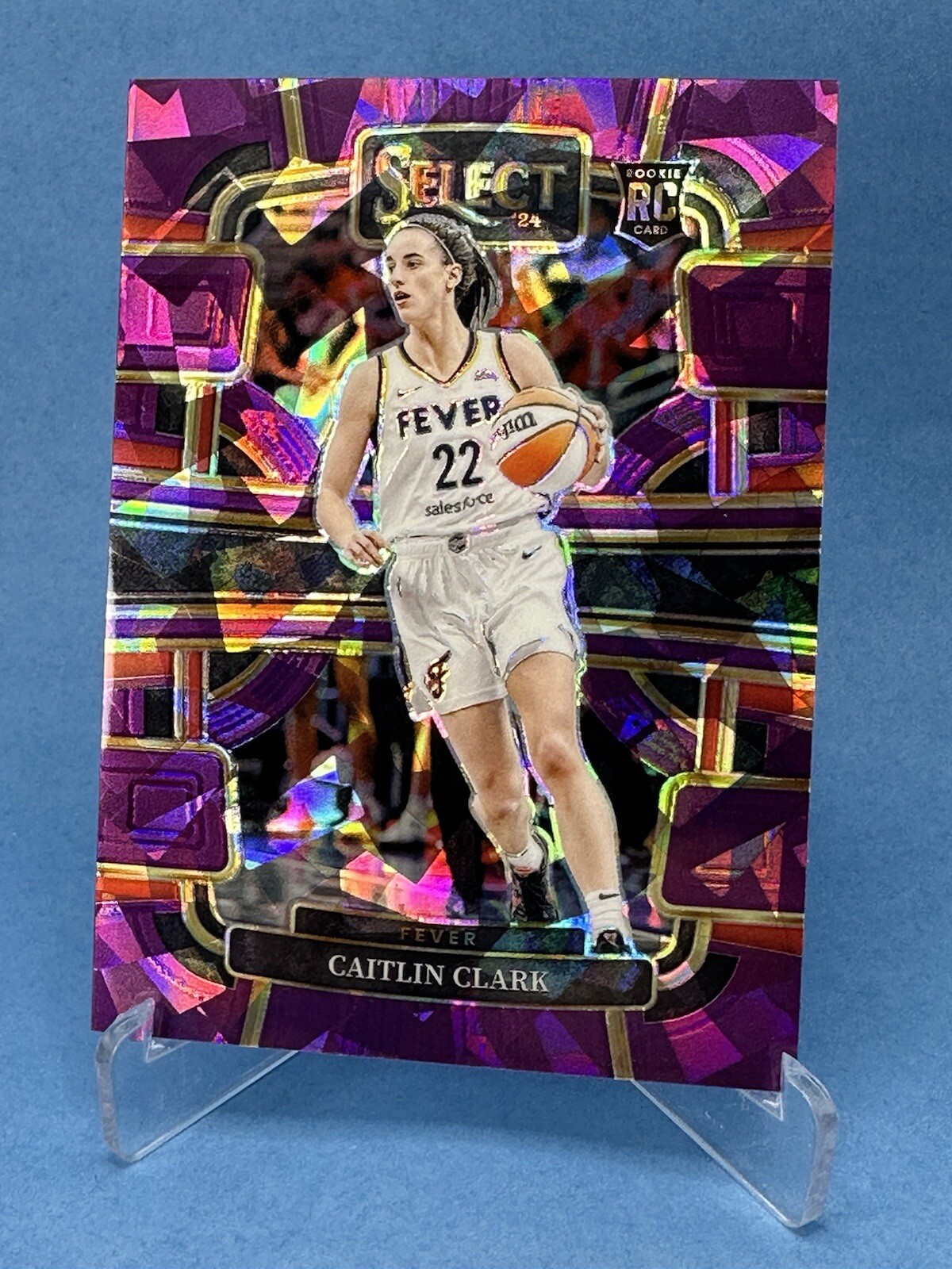 Elevate your collection with the 2024 Panini Select WNBA #72 Caitlin Clark Purple Ice sports trading card. This captivating card features the standout basketball player Caitlin Clark of the Fever team, presented in the eye-catching Purple Ice parallel variety from the popular WNBA Select Basketball set. The card is serial numbered, adding an exclusive touch to this collectible, with this particular card being the 10th in the series out of 149. As a non-autographed rookie card, it represents a noteworthy piece for enthusiasts and fans of the sport, commemorating Clark's impressive season in the WNBA. Add this gem to your collection and own a piece of basketball history.