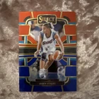 The 2024 Panini Select WNBA Dawn Staley card features a red and blue Prizm parallel numbered out of 399, representing the Charlotte Sting team. This original sports trading card is made of 20 Pt. card stock with English language text, showcasing the Women's National Basketball Association (WNBA) league. The card is part of an insert set, indicating it is a special edition within the series. Dawn Staley, a prominent figure in women's basketball, is the featured player on this unique and collectible card.