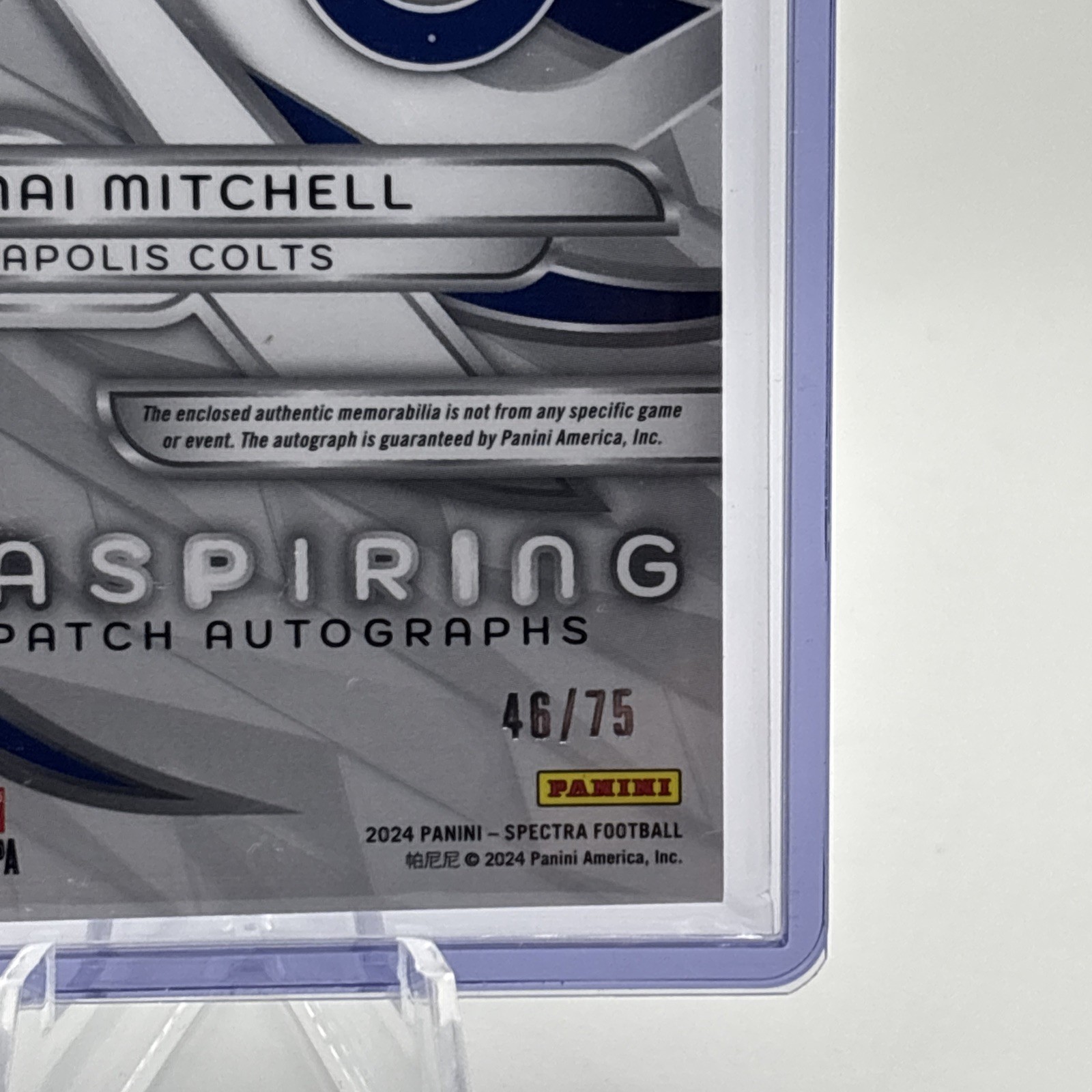 Card Number:APA-AMLTeam:Indianapolis ColtsSeason:2024Set:2024 Panini SpectraManufacturer:PaniniSport:FootballCard Condition:Near mint or betterParallel/Variety:Hyper PrizmType:Sports Trading CardInsert Set:Aspiring Patch AutographsPlayer/Athlete:Adonai MitchellPrint Run:60Features:Rookie, Insert, Memorabilia, Serial Numbered, Parallel/VarietyLeague:National Football League (NFL)