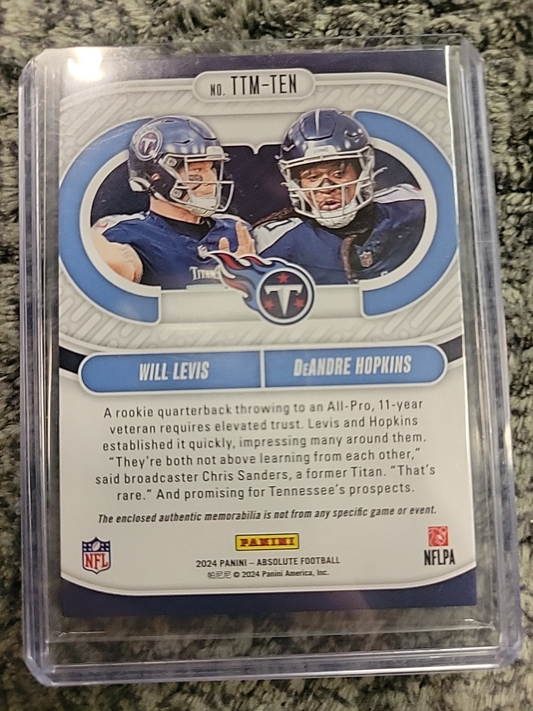2024 Panini Team Tandem DeAndre Hopkins Will Levis 71/99 Memorabilia Card