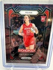 The product is a 2024 Panini WNBA Monopoly Prizm Red Icon trading card featuring rookie player Caitlin Clark from the Indiana Fever. The card is part of the Women's National Basketball Association (WNBA) series and is a Red Prizm parallel variety. The card number is 65 and it is manufactured by Panini.