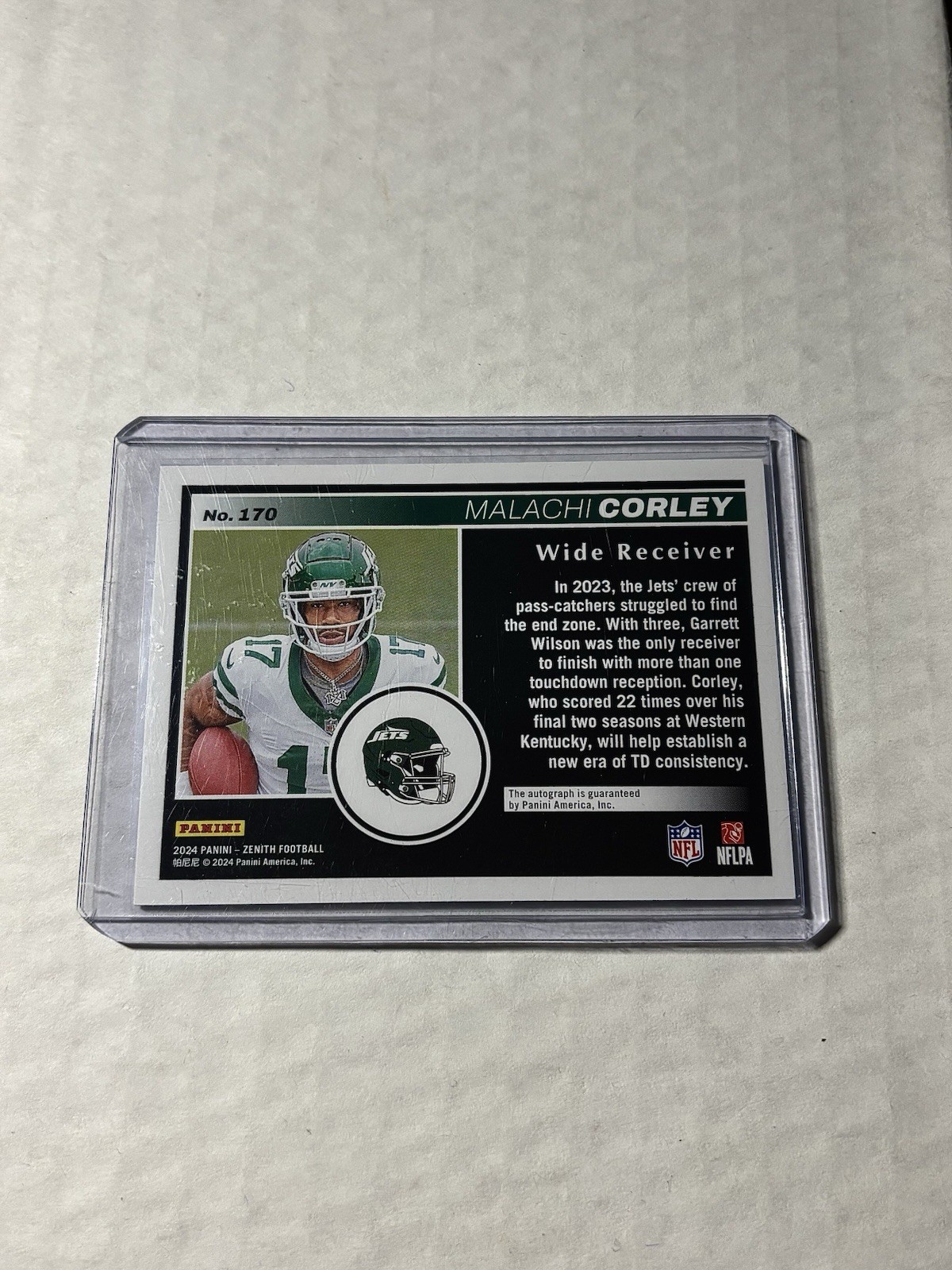 2024 Panini Zenith Malachi Corley Blue RC Auto /25 #170. card will be shipped in a standard envelope and top loader.