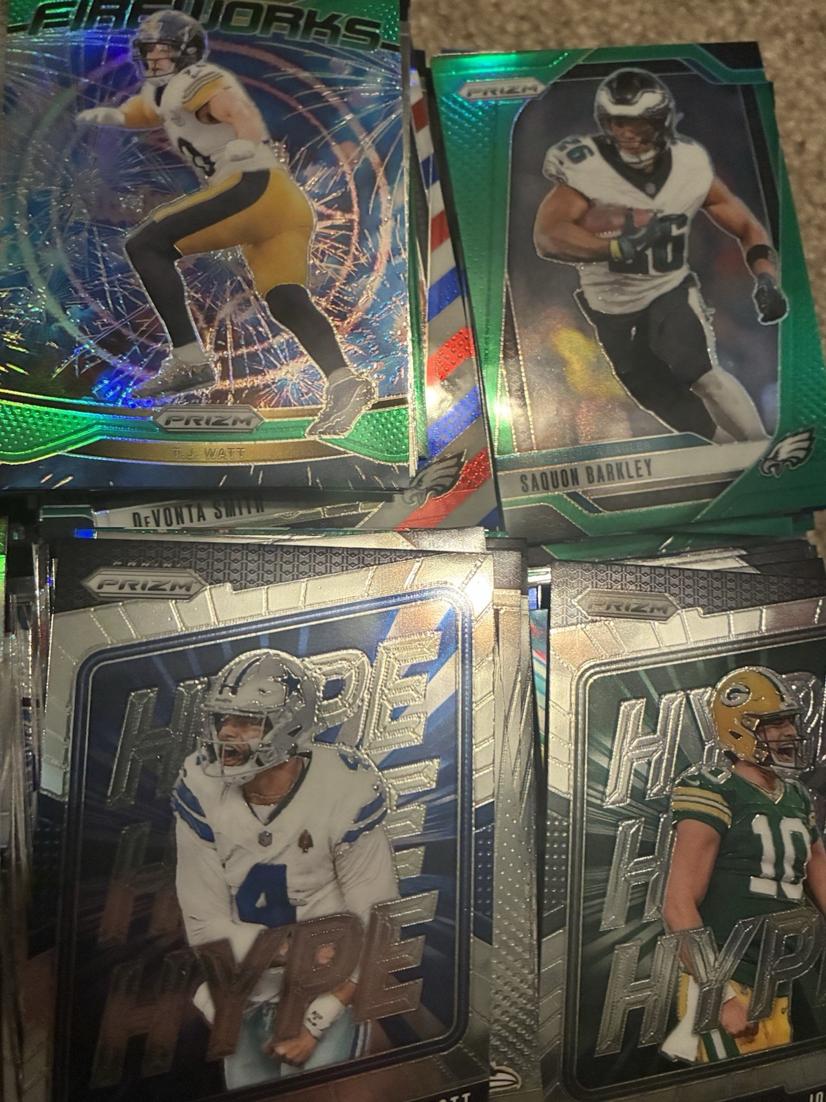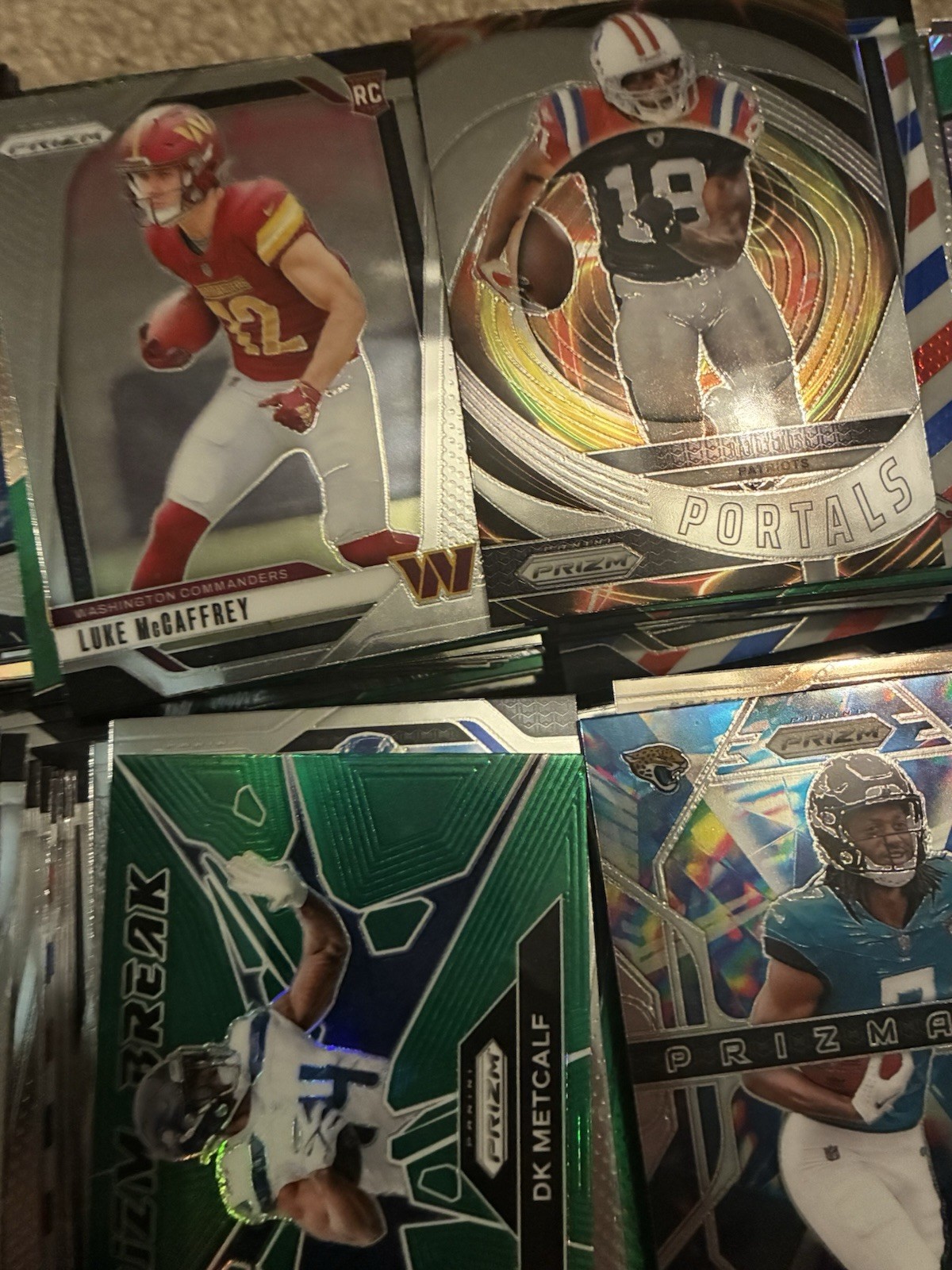The 2024 Prizm Football Rookie Parallel and Base Over 800 Card Lot features a variety of players including Jayden Daniels, Drake Maye, Bo Nic more. Manufactured by Panini, these standard-sized cards are made of card stock and belong to the National Football League (NFL) league. With a mix of base set, rookie, and parallel cards, this set is perfect for football fans looking to chase after their favorite players and teams in the 2024 season. The cards showcase athletes like Xavier worthy, Justin Jefferson, Brock Bowers, and A.J. Brown, making it a valuable addition to any sports trading card collection.