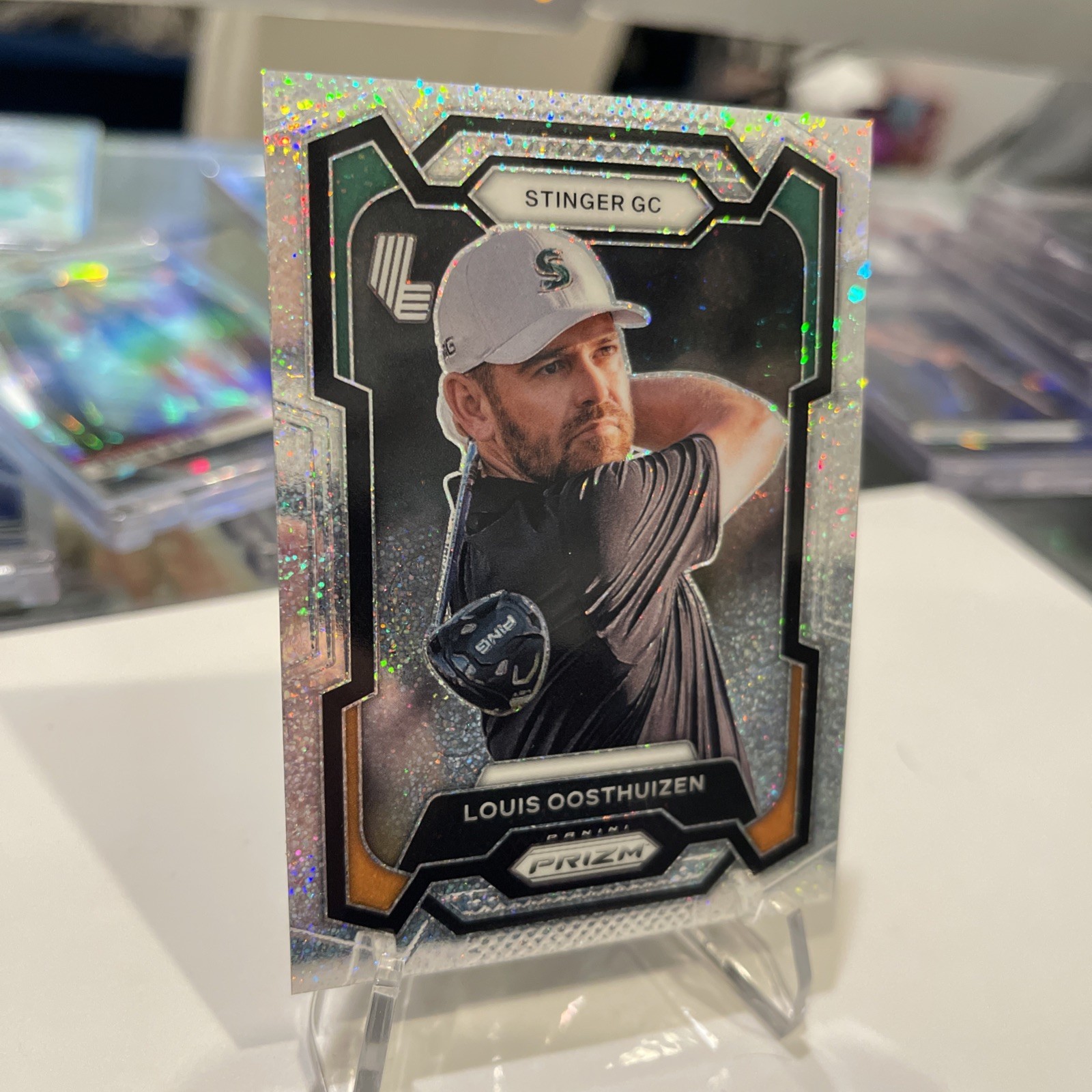 This 2024 Prizm LIV Golf trading card features Louis Oosthuizen, the talented golfer from Stinger GC. With a limited print run of only 299, this Pulsar variety card is a must-have for avid collectors. The card is serial numbered and comes with a variety of features that make it a valuable addition to any collection. The card is part of the 2024 Prizm LIV Golf set and is manufactured by Panini, a well-known brand in the sports trading card industry. It is perfect for fans of the sport and those who appreciate the skill and talent of professional golfers. Don't miss out on the opportunity to own this rare and unique card.