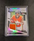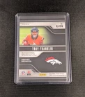 This is a 2024 Panini Prizm trading card featuring rookie player Troy Franklin of the Denver Broncos. The card is part of the Premier Jerseys Silver parallel set and includes memorabilia. It is a sports trading card with a Prizm finish, ungraded, and notated with card number PJ-TFN.