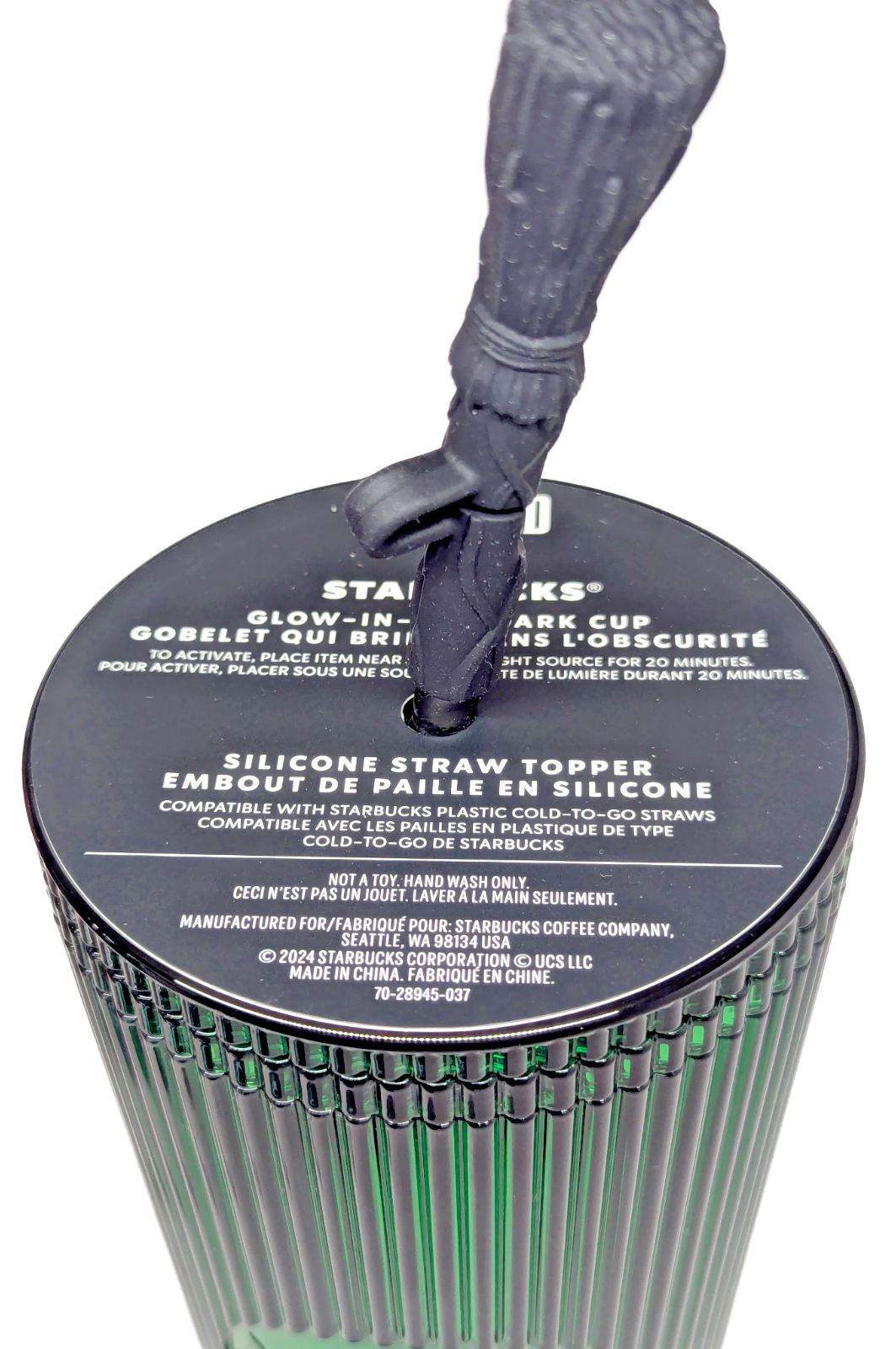 2024 Starbucks Wicked Elphaba Green Black Broom Topper 24oz Cold Cup Tumbler