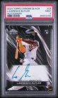 This 2024 Topps Chrome Black trading card features an autographed hard signature of Lawrence Butler, a former player for the Oakland Athletics. The card is certified by Topps and has a grade of 275022. It is part of the Autographs insert set and has the card number CBA-LB.The card is a great addition to any sports trading card collection and is a must-have for fans of the Oakland Athletics. With its rookie and insert features, it is sure to be a valuable card for collectors. Add this autographed card to your collection today!