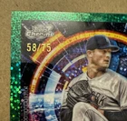 This card features a green refractor parallel, serial numbered 58/75 of New York Yankees all star pitcher Gerrit Cole. The card is from 2024 Topps Chrome Cosmic and is a Star Command insert. The card is pack fresh and will be shipped via USPS first class mail in a PWE, top loader and cardboard protection.
