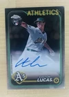 This 2024 Topps Chrome sports trading card features Easton Lucas, a rookie from the Oakland Athletics in Major League Baseball. The card is autographed and made of chrome material, with a shiny finish that adds to its overall appeal. It is a single card from the 2024 Topps Chrome set, and is in excellent shape, near mint or better. The card is perfect for collectors who appreciate baseball memorabilia, especially those who are fans of the Oakland Athletics. It is a great addition to any sports trading card collection, and its autographed feature makes it even more special. Don't miss out on the chance to own this rare and highly sought-after card.