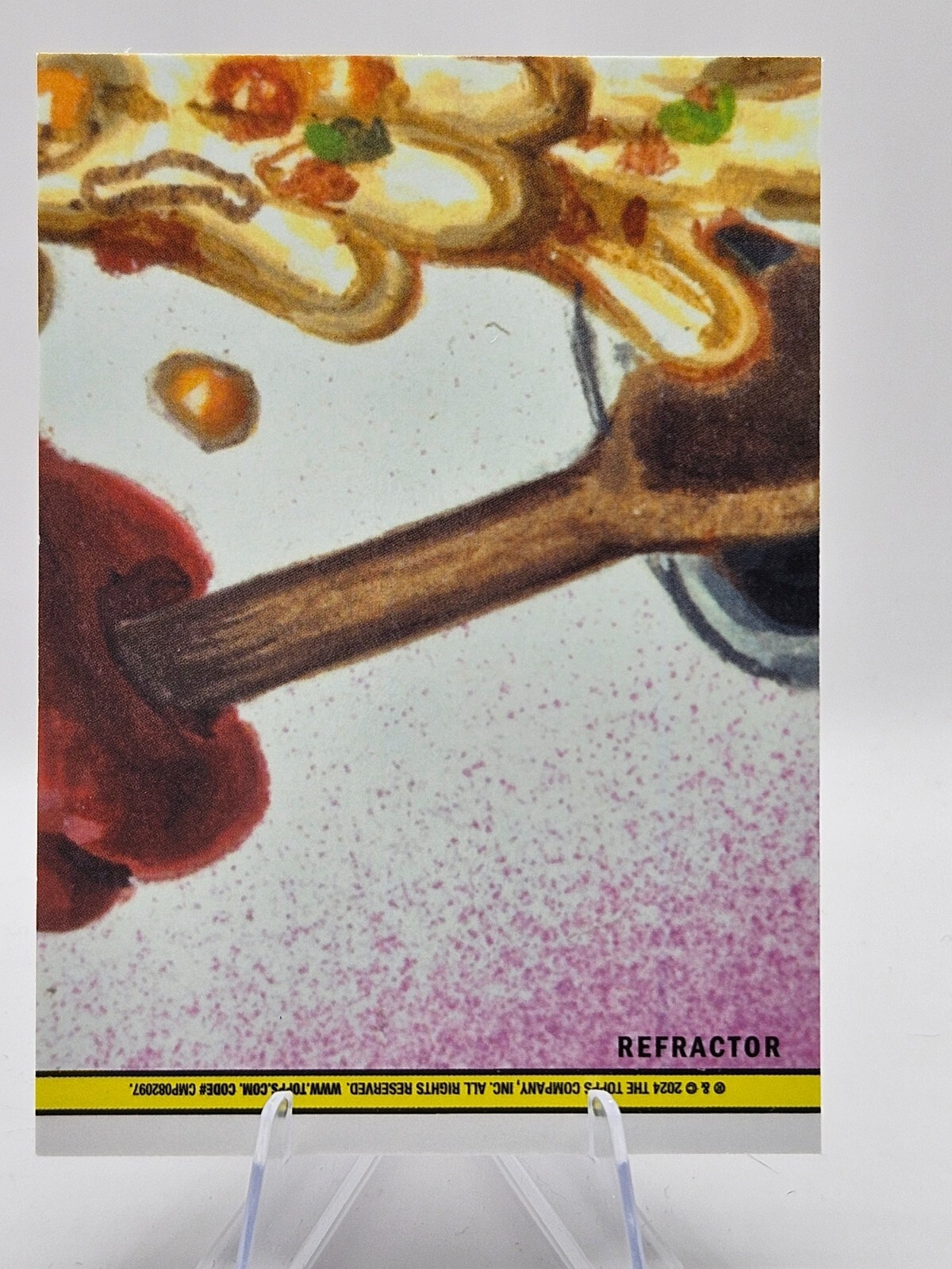 The product is a 2024 Topps Chrome Garbage Pail Kids refractor series 7 trading card featuring Bratty Maddy from the popular non-sport franchise. This original card is part of the Garbage Pail Kids - Series 7 set, manufactured by Topps in the United States. The card is in English and has a standard size, making it a valuable collectible for fans of the Garbage Pail Kids Movie and non-sport trading cards.