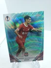 This rare 2024 Topps Chrome soccer trading card features Dominik Szoboszlai, a talented player from Liverpool. The card is a stunning neon green parallel variety, with only 199 produced, making it a highly sought-after item for collectors. It is part of the UEFA Champions League set and is serial numbered for authenticity. The card is in standard size and manufactured by Topps in 2024. It is a sports trading card and features the player's name, team, and card number (119). This card is an excellent addition to any soccer fan's collection and is sure to impress with its unique design and rarity.