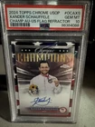 Capture a piece of sports history with this 2024 Topps Chrome US Olympic Xander Schauffele Flag Auto RC, card number OCA-XS. This collectible features the renowned golfer Xander Schauffele and is part of the prestigious 2024 Topps Chrome set. As a standout item, it boasts a hard-signed autograph by Schauffele himself, authenticated by Topps for unquestionable legitimacy. This rookie card is not just a single, it's a gem from the PGA Tour, celebrating the Olympic Games season. With a limited print run of just 76, this card is numbered 61 and has been professionally graded by PSA with a perfect score of 10. It's a chromium-finished treasure, a must-have for golf enthusiasts and serious collectors alike.