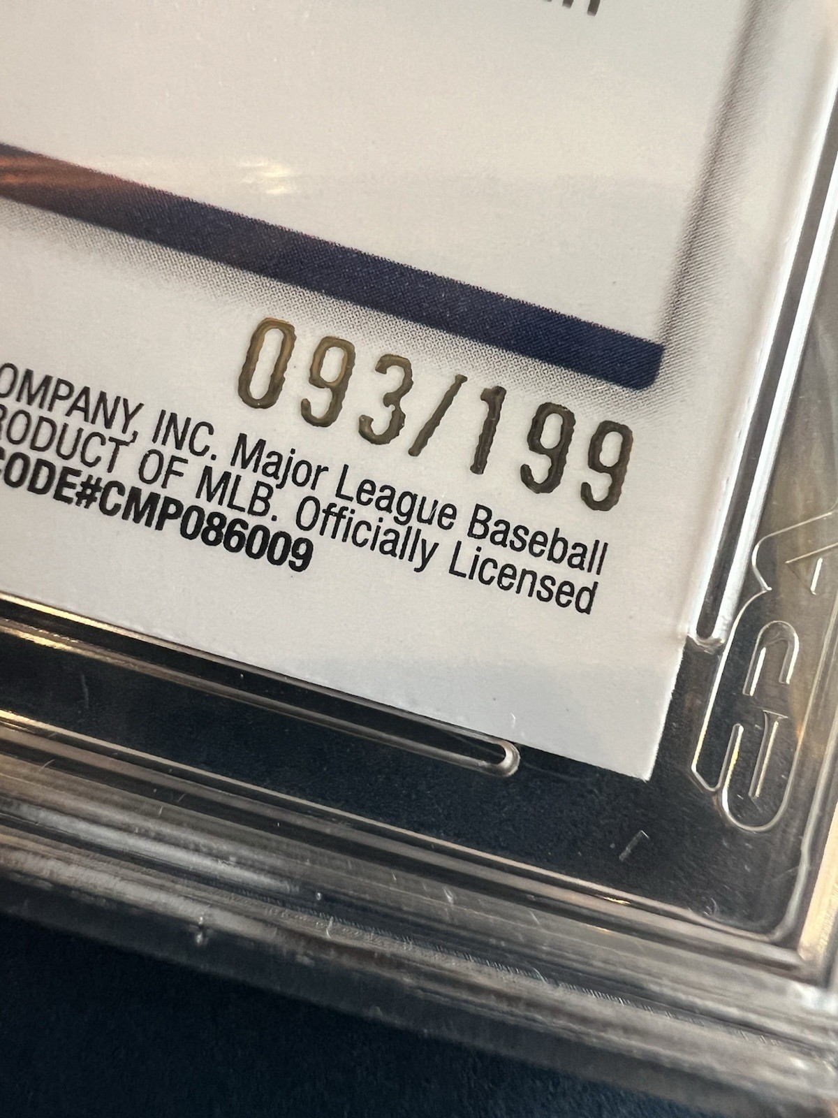 Capture the excitement of the diamond with the 2024 Topps Update Elly De La Cruz & J-Rod Toolsy Tandem US238 Red Foil card. This special edition sports trading card features two of baseball's shining stars, Julio Rodriguez and Elly De La Cruz, from the Seattle Mariners and Cincinnati Reds teams, respectively. With its stunning red foil parallel variety, this card is a standout piece for any collector. Limited to just 199 prints, this card is serial numbered, ensuring its uniqueness and collectability. The card comes with a hologram and is part of the Major League Baseball (MLB) series, adding to its prestige. It's an original release from Topps, a trusted name in sports memorabilia, and has been professionally graded by Automated Grading Systems (AGS) with an impressive grade of 9.5.