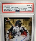 This is a rare and valuable 2024 Topps Finest baseball trading card featuring Lawrence Butler, signed by the player himself. The card is a Gold Refractor parallel/variety, serial numbered out of 50, and part of the Finest Autographs insert set. It is a hard-signed autograph format, making it an even more desirable addition to any collection. This card is a must-have for any Oakland Athletics fan or sports trading card collector. It is a rookie card, featuring Butler's autograph, and is sure to increase in value over time. Don't miss your chance to own this unique and limited edition card.