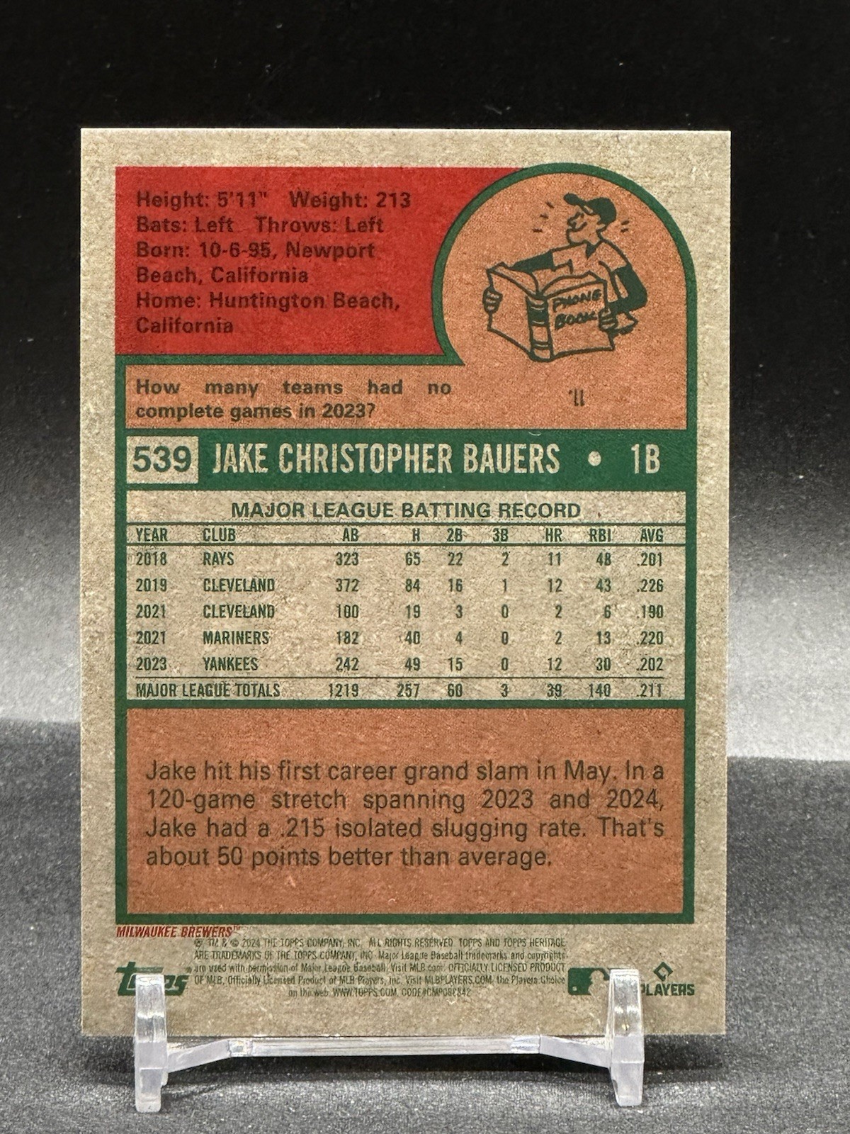 2024 Topps Heritage High Number Jake Bauers Chrome #504/699 - Milwaukee Brewers - card #539 Thanks for checking out our listings. Please reach out to us if you should have any questions about any of our listings and be sure to check out our other items listed on eBay if you are looking for singles, inserts, lots, etc. from this set or any others - We have plenty of extras of base cards, as well as inserts!! Also, feel free to message us with any questions you might have regarding the photos. Most of our cards were opened from packs and went directly into soft “penny” sleeve and into a hard card (handled with care). Shipping We do offer combined shipping for anyone who purchases more than one item from us. Simply message us when you are finished shopping, and we will send a combined invoice with discounted shipping on it. All cards will be carefully placed inside a soft “penny” sleeve, hard card, team bag, and then between two pieces of cardboard and secured inside a bubbled envelope (unless you pay for eBay Standard envelope). If the items do not fit inside a bubbled envelope, then we will put cards in a plastic case, and ship the items inside a small box using air bags, packing peanuts, bubble wrap, etc. and make sure the item(s) are carefully packaged and secured. If you prefer to save on shipping, we do offer the “eBay standard envelope” shipping rate of $1.15 for cards/items that weigh less than three ounces, and the card(s) price is less than $20 for the card. Be sure to choose the preferred shipping method when you checkout, as we do offer a couple of options for you. If you purchase a complete set, then we will carefully package your item(s) using bubble wrap, air bags, and/or packing peanuts to make sure your item arrives safely. Be sure to check out our feedback messages and see what other buyers are saying about us. All items will carefully ship within 24 hours of receiving confirmed payment. Thanks for checking out our items and we look forward to doing business with you!!