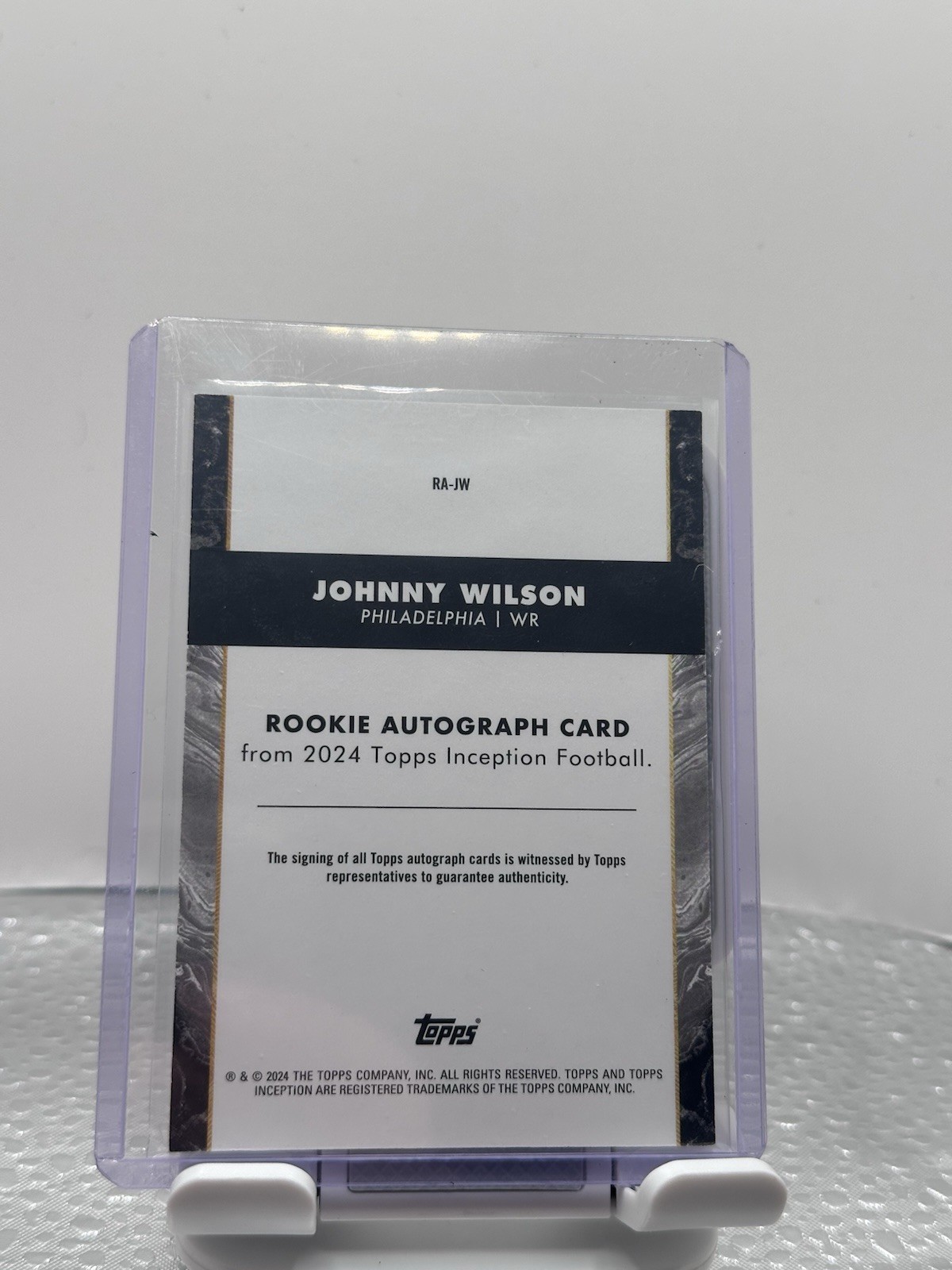 This rookie autograph card is a must-have for collectors! Johnny Wilson’s bold signature pops against the sleek Inception design, and the card’s condition is flawless. A fantastic addition to any football memorabilia collection—highly recommended for fans and investors alike!