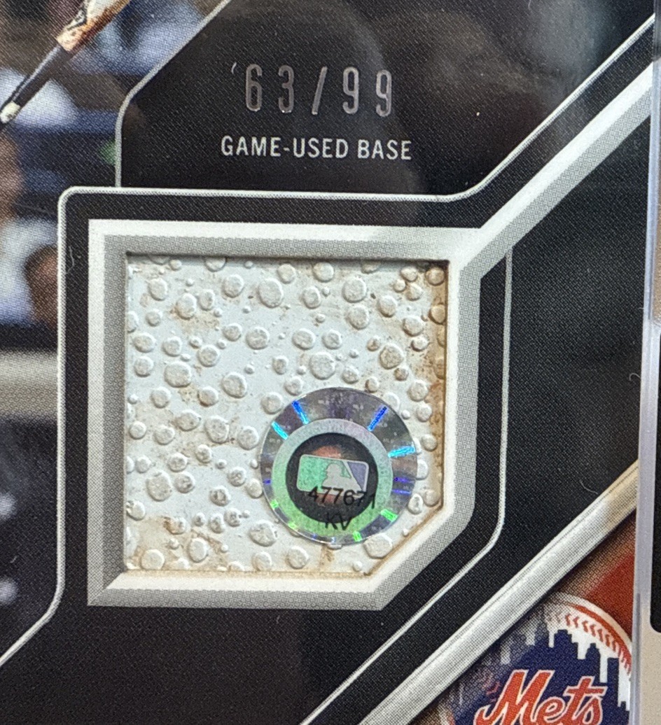The product is a 2024 Topps Now Game-Used Base Relic Luisangel Acuña #711B Black RC /99 trading card featuring the player's first home run. This original sports trading card is part of the Topps Now set, specifically for Major League Baseball and the New York Mets team. Made of paperboard and card stock, this limited print run card is serial numbered, a short print, and a parallel/variety rookie card, adding to its rarity and collectability. Perfect for fans and collectors looking for unique memorabilia from a promising young athlete like Luisangel Acuña.