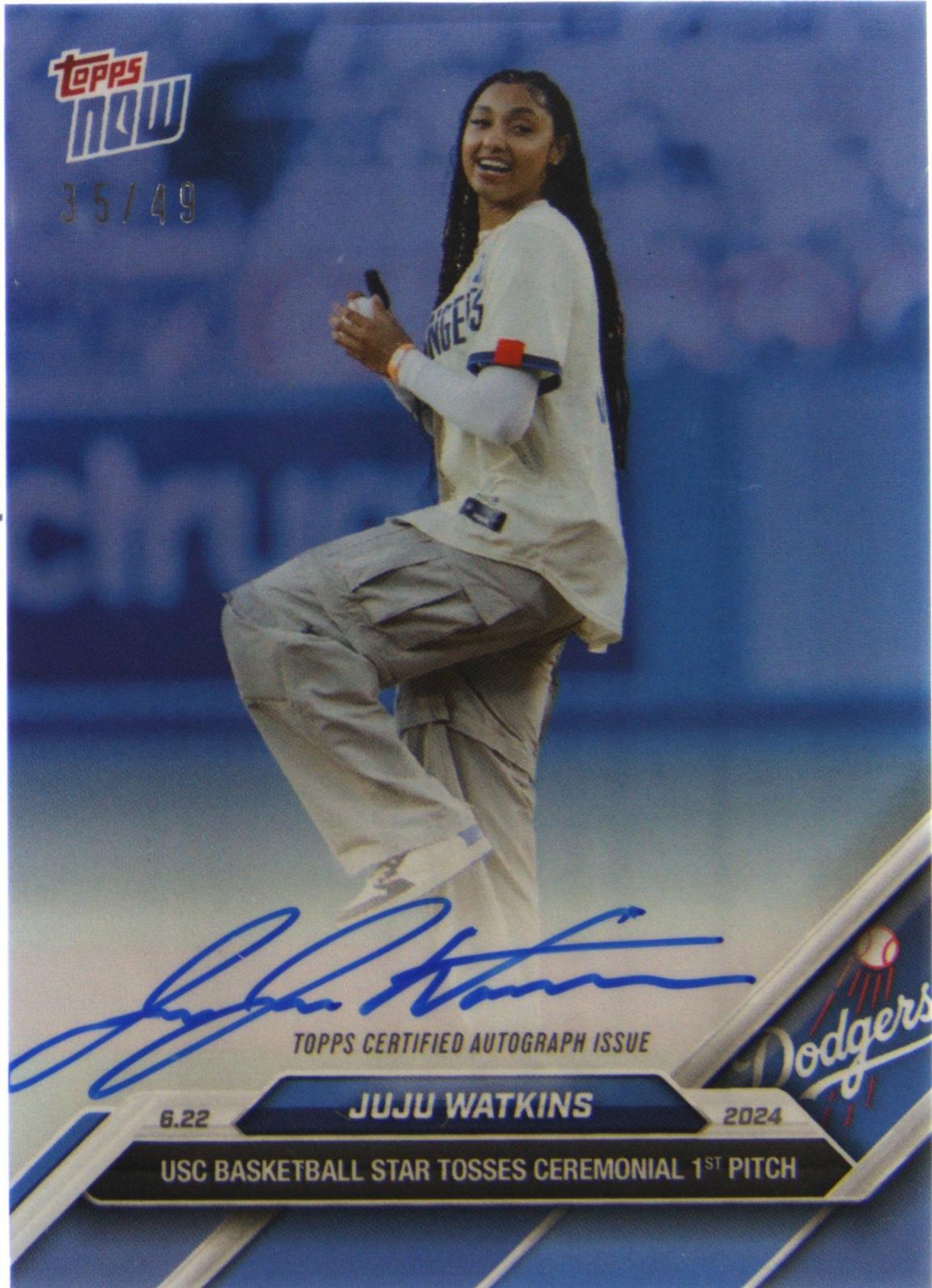 Manufacturer:ToppsPlayer/Athlete:JuJu WatkinsSet:2024 Topps NowSeries:Topps Nowbrand:ToppsSport:BasketballFeatures:Rookie, Serial Numbered, Base Set, Parallel/VarietyTeam:Los Angeles DodgersParallel/Variety:BlueLeague:Major League Baseball (MLB)Print Run:49Season:2024Card Number:332