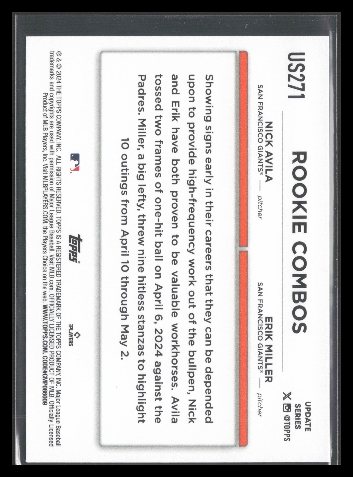 2024 Topps Update Erik Miller Nick Avila Cards typically ship each morning around 5 am. I offer the following shipping services: ebay standard envelope: this is put in a semi rigid card holder with a piece of blue painters tape sealing it and in a plain white envelope with tracking. This is typically for cheaper cards ($20 or less). This service may not be available for thicker cards. USPS First Class: this is put in a top loader, then into a team bag with a piece of card board in it as well. Then shipped in a bubble mailer with tracking. This is for individuals that do not like the idea of the plain white envelope or for cards $20-100. USPS Priority Small Flat Rate Box: this is put into a top loader, then into a priority bubble mailer, then lastly into a flat rate priority box with tracking. Ideally for cards priced over $100. Please check my store as I combine shipping.