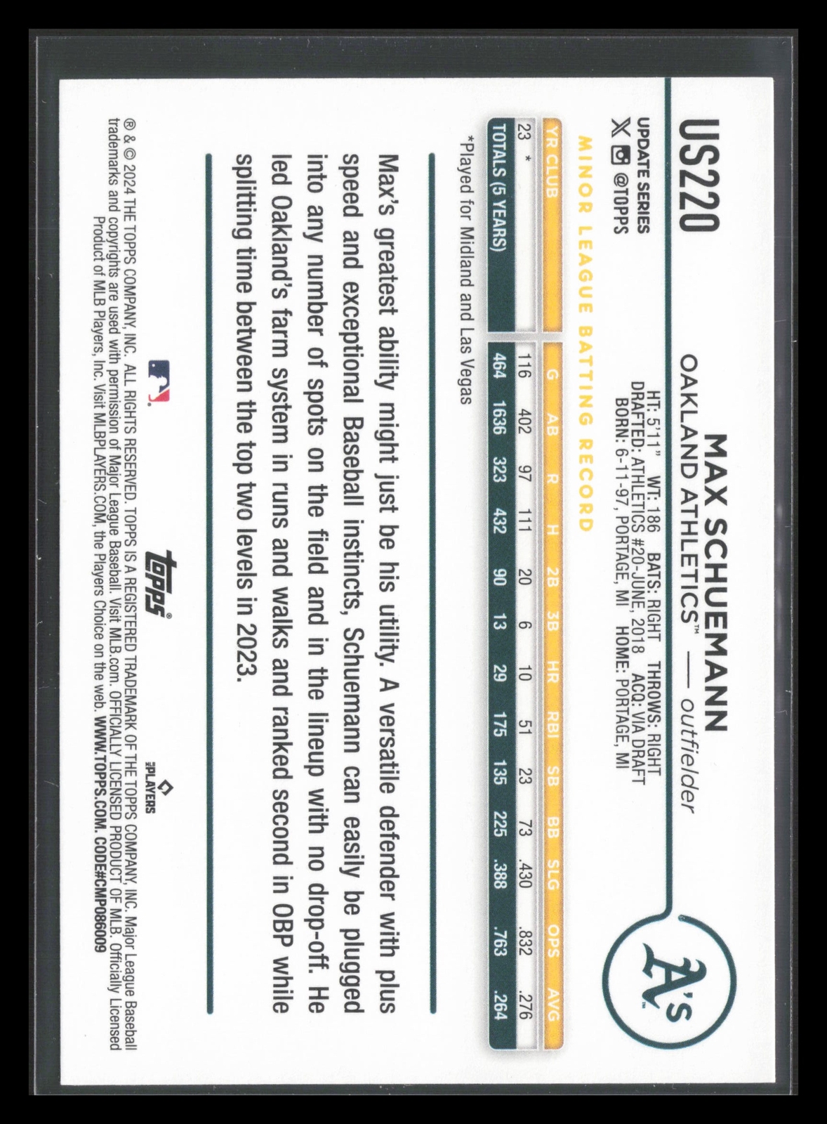 2024 Topps Update Max Schuemann Cards typically ship each morning around 5 am. I offer the following shipping services: ebay standard envelope: this is put in a semi rigid card holder with a piece of blue painters tape sealing it and in a plain white envelope with tracking. This is typically for cheaper cards ($20 or less). This service may not be available for thicker cards. USPS First Class: this is put in a top loader, then into a team bag with a piece of card board in it as well. Then shipped in a bubble mailer with tracking. This is for individuals that do not like the idea of the plain white envelope or for cards $20-100. USPS Priority Small Flat Rate Box: this is put into a top loader, then into a priority bubble mailer, then lastly into a flat rate priority box with tracking. Ideally for cards priced over $100. Please check my store as I combine shipping.