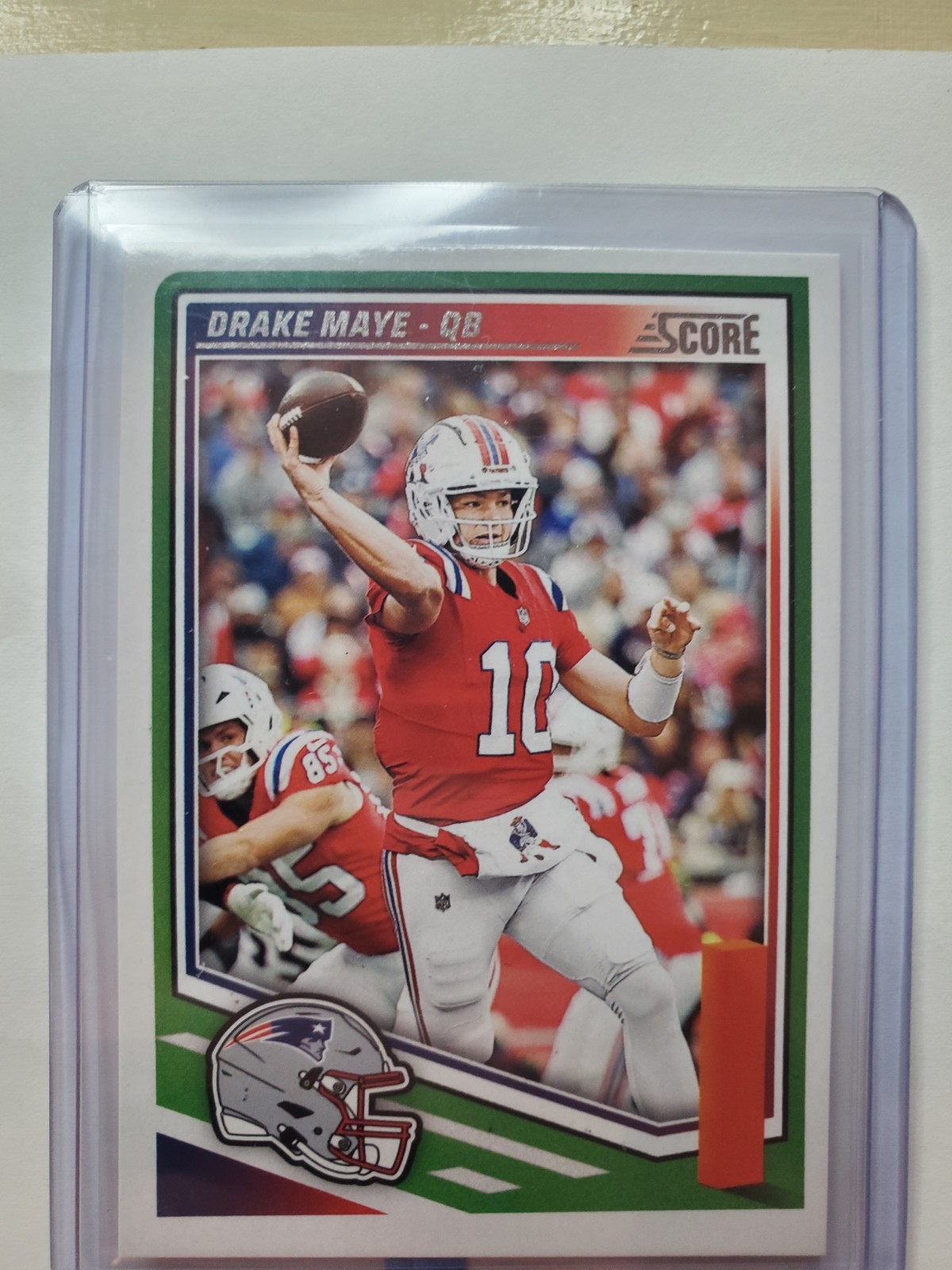 The Drake Maye 5x Rookie/Throwback Lot includes five football trading cards featuring rookie player Drake Maye. The lot includes a Silver Prismatic Rookie Card, NFL Debut Rookie Card, and Throwback card, all made of card stock and manufactured by Panini. The cards are autograph-free and authenticated by Donruss, with the autograph of Desmond Ridder included on one of the cards. These standard-sized sports trading cards showcase Maye in his New England Patriots uniform for the 2024-25 season, perfect for fans and collectors looking to add unique and authentic pieces to their collection.
