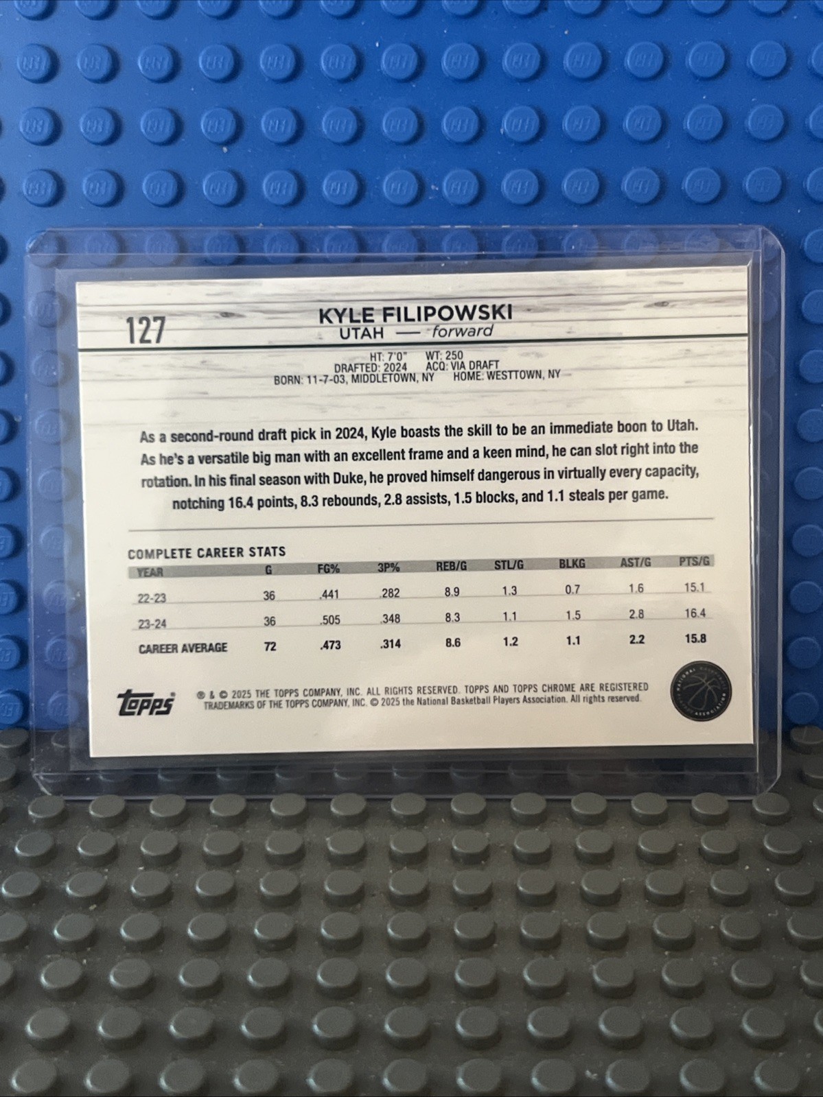 2024-25 Topps Chrome Basketball Kyle Filipowski /299 Purple Speckle #127 Jazz NM. Condition is Ungraded. Shipped with eBay Standard Envelope for eligible items up to $20.