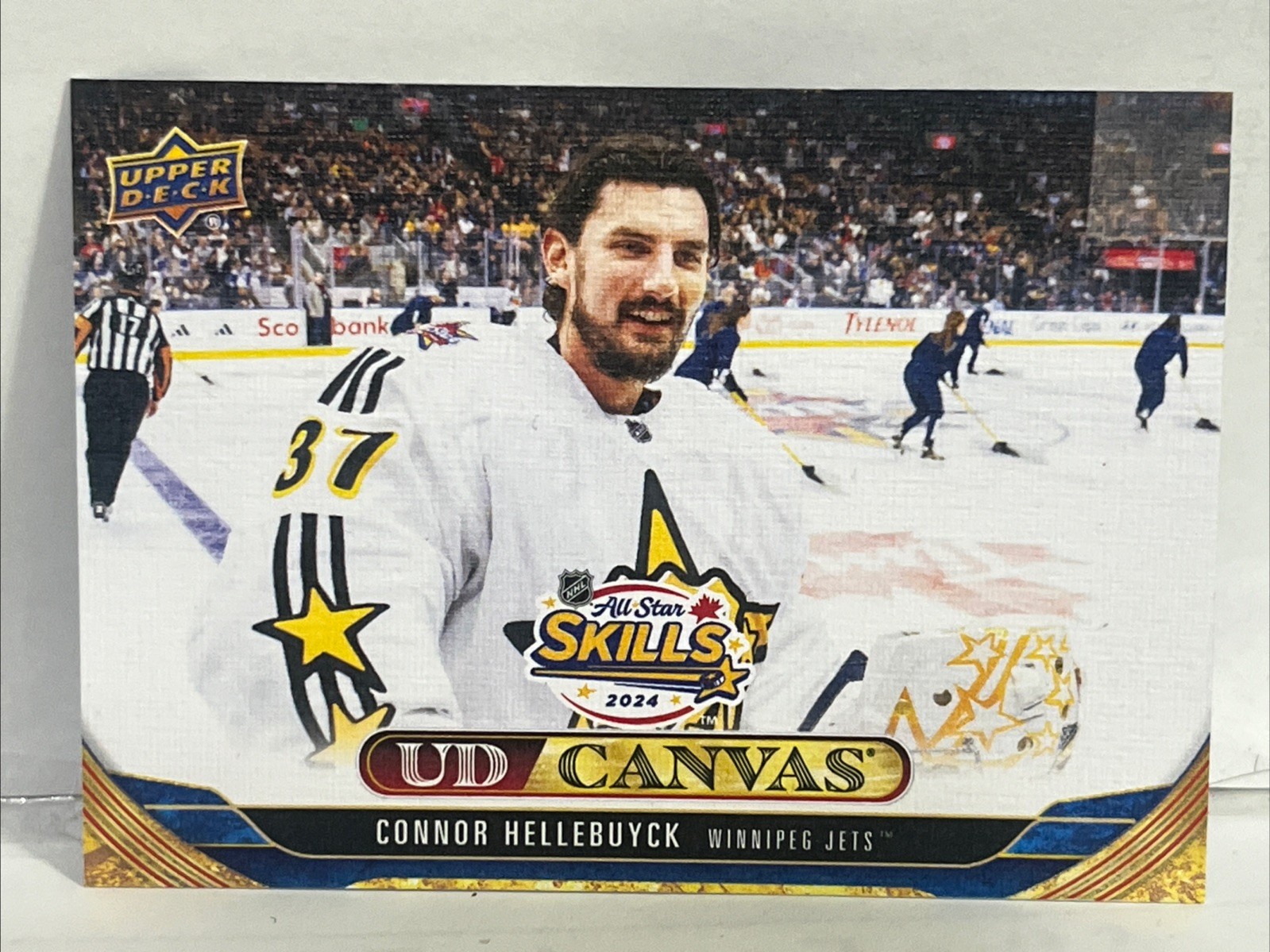 Explore the ice with the 2024-25 Upper Deck Extended Series, showcasing the best of the NHL's All-Star Skills on a UD Canvas. This lot features a collection of trading cards highlighting various players and their impressive abilities, all printed on high-quality card stock to ensure they hold up as collectibles for years to come. From the Vancouver Canucks to other teams across the league, each card in this set is an original issue, complete with English language details. While these cards are not autographed, they do include the sought-after Insert feature, adding a special touch to your sports trading card collection. Whether you're a seasoned collector or new to the hobby, these cards bring a piece of the on-ice action right into your hands. All cards are sold as is, no return or refund for any reason whatsoever. All sales are final. Only cards seen in main picture and listed below are included with this set. Set includes; Connor Hellebuyck William Nylander Thatcher Demko( B/W UD Canvas) All cards will be shipped out with tracking information and packaged in penny sleeves and team bags with bubble mailers.