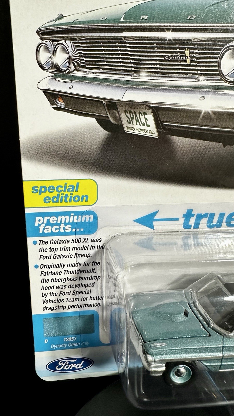 Capture the essence of classic Americana with the 1964 Ford Galaxy 500 XL from Auto World's Vintage Muscle series. This collectible diecast model, scaled at 1:64, boasts an eye-catching green poly finish that's sure to stand out in any display. Meticulously crafted to reflect the iconic design and spirit of the era, it's a must-have for both diecast enthusiasts and fans of muscle cars. The model comes complete with a protective case and stand, ensuring it remains pristine and ready for exhibition. With its limited edition status, this Ford Galaxy 500 XL is a treasure for collectors of all ages, recommended for anyone aged 4 and up. Add this timeless piece to your collection and celebrate the legacy of classic American muscle cars.