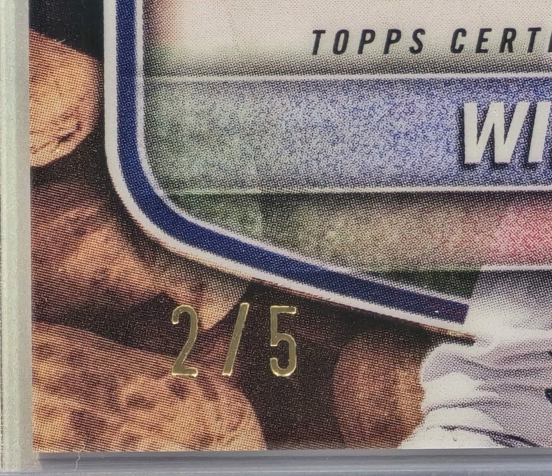 The 2025 Bowman Winston Santos Snack Pack Peanuts Refractor Auto /5 #CPA-WS trading card is a highly sought-after collectible for baseball fans and card collectors. This limited-edition card features an autograph from Winston Santos of the Texas Rangers, with only 5 copies in existence. Made of high-quality card stock with a 35 Pt. thickness, this exclusive card is part of the Snack Pack insert set and is authenticated by Topps. It is a must-have for fans of Major League Baseball and collectors of rare and valuable trading cards.