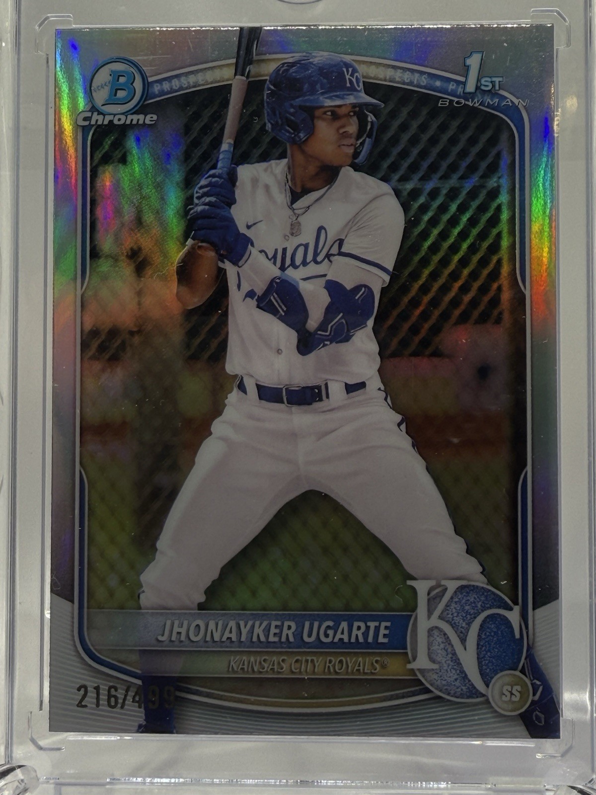 2025 Bowman's Chrome set of ten cards featuring MLB players. These standard-sized sports trading cards are made of card stock and are original prints manufactured by Topps. Each card and includes an image, making it a valuable addition to any baseball card collection. Cards are in Gem mint condition