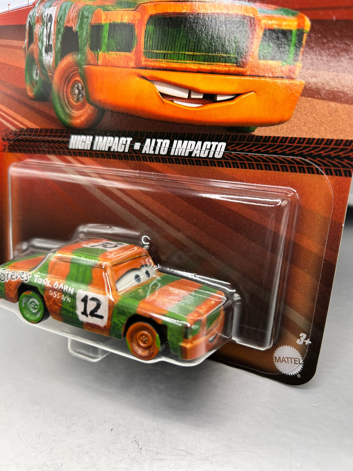 Discover the vibrant and sleek "HIGH IMPACT" car from the beloved Disney Pixar Cars series. This 1:55 scale diecast model boasts an eye-catching green and orange color scheme, capturing the essence of the film's dynamic and charming design. The metal body construction ensures durability, while the unopened package preserves the car's pristine quality, making it a must-have for collectors and fans alike. With no specific vehicle year mentioned, this model retains its timeless appeal, complemented by the iconic Disney Pixar Cars theme. It's a fantastic piece that not only pays homage to the character family's rich legacy but also brings a touch of fun and nostalgia to any collection. Thanks for your time!