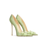 2025 New Dark Green Leather Pointed Toe Stiletto Heel Dress Shoes for Women
