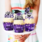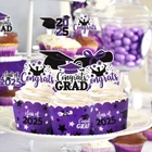 These graduation cupcake decorations would make the perfect addition to your graduation party decorations! Your college or high school graduation cupcakes would look beautiful with these cupcake toppers and liners. Specification: Quantity: 36pcs cupcake toppers+ 36pcs cupcake wrappers Size: cupcake topper: Approx 3inch high, 2inch Wide cupcake wrapper: The wrapper's diameter across the bottom of the assembled wrapper can be adjusted to these sizes: 2.15 inches, 2 inches, or 1.85 inches. Material: Paper Please Note: the set is for decoration purposes only, not edible and please do NOT place in oven. 2025 Graduation Cupcake Decor -- Celebrate your 2025 Graduate with these awesome cupcake toppers in your school colors! You will receive 36pcs paper cupcake toppers and 36pcs paper cupcake wrappers. Add more fun at your graduation party! Adjustable Size -- Each cupcake topper measures approx 3inch high, 2inch wide. Cupcake wrappers can easily adjust to three sizes(dia.2.15 inches, dia.2 inches, or dia.1.85 inches of the bottom)for standard homemade and bought cupcakes. You can choose the most suitable decorative size according to the size of the cake you make. Easy to Use -- The graduation cupcake liners ship flat, and require minimal assembly. Assemble in seconds by sliding the tab into one of three slots of the cupcake wrapper. Cupcake charms arrive ready to use. Premium Material - All of our cupcake toppers and wrappers are printed in high definition and quality card stock paper(single sided), no fading and no odd smell, unique design in vivid purple, white and black. How fun it will be to have these on your graduation party tables. We Care About Your Satisfaction -- Love them or we will buy them back from you, no questions asked!