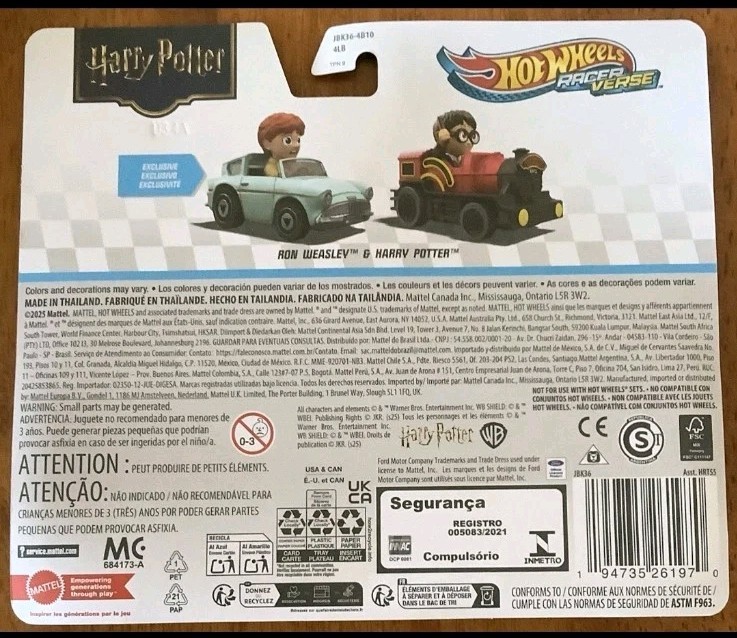 The product is a 2025 Hot Wheels Racer Verse Ron Weasley & Harry Potter car 2 pack, featuring a multi-color design and a scale of 1:64. It is part of the Racer Verse series by Mattel, with the theme of Harry Potter. The cars are recommended for children aged 3 years and up, and come in an unopened box. This collectible toy is perfect for fans of the Harry Potter series, offering a fun and imaginative play experience for both boys and girls.
