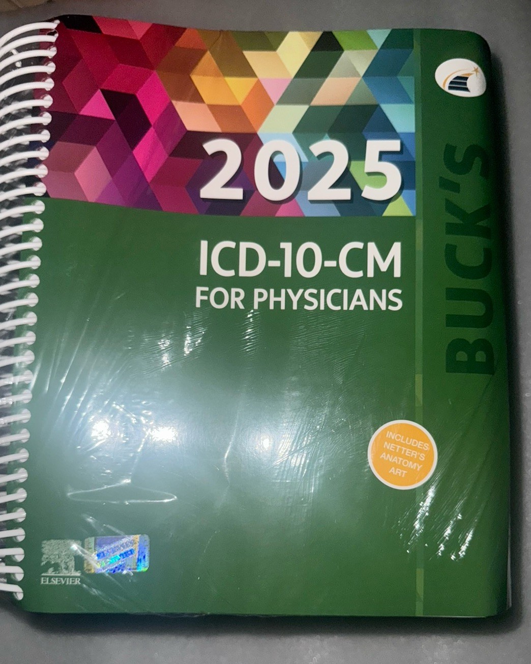 Buck's 2025 ICD-10-CM for Physicians is a comprehensive textbook authored by Jackie Koesterman and published by Elsevier. This spiral-bound edition provides detailed information on medical coding and is specifically designed for medical professionals, such as physicians and allied health services personnel. With 1646 pages of content, this textbook covers subjects like pathology, medical history, and nursing, making it a valuable resource for those in need of accurate and up-to-date information on ICD-10-CM coding.