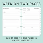 Fast Shipping Great Customer Support Satisfaction Guaranteed DESCRIPTION Shipping Shipping Shipping All domestic packages are shipped for Free (Unless other shipping method was selected during the checkout) Most items ship and arrive much sooner than the estimate delivery date. Usually within 2-3 days from payment. However, we have longer estimates to compensate for the occasional delay or supply chain breakdown. We do not accept P.O. BOXES - PLEASE PROVIDE A PHYSICAL ADDRESS Return Return Return In the event that you would like to return your purchase, we allow returns that are processed within the defined return date (the return date is to be found in the return policy/shipping and handling section) Please contact us for a return authorization and the return shipping address. Payment Payment Payment PayPal is our preferred method of payments it's the quickest, easiest and most secure way to pay for your goods or services online. PayPal offers buyer and seller protection should there be a problem. If you do not have a PayPal account, to get started and buy your first item with us is very easy. Simply click on the 'Buy It Now' button and follow the eBay checkout steps. Select PayPal as the payment method you then will be given the chance to enter your card details in to PayPal's secure checkout in order to pay for your order. Once the payment has been made, you will then be given the opportunity to make your own PayPal account to make paying for your items in the future very easy. Should there be a problem with payment please do let us know. Feedback Feedback Feedback Customer satisfaction is very important to us. If you have any problem with your order,please contact us and we will do our best to make you satisfied, please do not leave a negative feedback before we resolve your problem. We guarantee that your issue will be solved quickly. As long as you are happy with your purchase of , please leave us a positive feedback. Your feedback is very important to us it affects our search placement on eBay. We will leave a positive feedback for you in return automatically once we receive your feedback. Contact Us Contact Us Contact Us If you have any queries, please contact us via ebay. We usually respond within 24 hours on weekdays. Thank you for visiting our ebay store! 8-disc punched planner refills compatible with Arc, Levenger, TUL junior size discbound planners 2025 year weekly pages run from January 2025 to December 2025 Weekly spread includes Week's Focus & 2-month calendar sections on the top and a Monday to Sunday format 2 page monthly spread with ruled daily blocks, calendar & notes section, laminated tabs to allow quick turning Additional pages: calendar & holidays, contacts, yearly goals and important dates pages, 3 monthly spread pages for early planning (Oct 2024 to Dec 2024, no weekly pages) 2025 Junior Size Weekly & Monthly Planner Refill, 8-Discbound, 2 Pages/Week Click here to see description Fast Shipping Great Customer Support Satisfaction Guaranteed DESCRIPTION Shipping All domestic packages are shipped for Free (Unless other shipping method was selected during the checkout) We ship within two business days of payment, usually sooner Standard FREE shipping takes between 3-5 business days Expedited shipping takes between 2-3 business days Overnight shipping takes between 1-2 business days We do not accept P.O. BOXES - PLEASE PROVIDE A PHYSICAL ADDRESS We Ship Globally using ebay's GSP, the item is sent to a logistic center in KY and shipped from there to the rest of the world. International customers are responsible for all duties and taxes Contact your local authority for questions related to the amount of duties or taxes you will be responsible for Return In the event that you would like to return your purchase, we allow returns that are processed within the defined return date (the return date is to be found in the return policy/shipping and handling section) Please contact us for a return authorization and the return shipping address. Please contact us for a Return Merchandise Authorization (RMA) number. We advise you to use a reputable carrier service when returning your goods. Please pack all returns appropriately. We ship globally Via eBay's global shipping program (GSP). Thus we don't cover returns for items shipped globally. Buyers returning such items will be refunded ONLY for the item's cost and not for the shipping. please check the Voltage information and make sure it matches the one in your country. In case it's not stated in the description, do ask us. Payment PayPal is our preferred method of payments it's the quickest, easiest and most secure way to pay for your goods or services online. PayPal offers buyer and seller protection should there be a problem. If you do not have a PayPal account, to get started and buy your first item with us is very easy. Simply click on the 'Buy It Now' button and follow the eBay checkout steps. Select PayPal as the payment method you then will be given the chance to enter your card details in to PayPal's secure checkout in order to pay for your order. Once the payment has been made, you will then be given the opportunity to make your own PayPal account to make paying for your items in the future very easy. Should there be a problem with payment please do let us know. Feedback Customer satisfaction is very important to us. If you have any problem with your order,please contact us and we will do our best to make you satisfied, please do not leave a negative feedback before we resolve your problem. We guarantee that your issue will be solved quickly. As long as you are happy with your purchase of , please leave us a positive feedback. Your feedback is very important to us it affects our search placement on eBay. We will leave a positive feedback for you in return automatically once we receive your feedback. Contact Us If you have any queries, please contact us via ebay. We usually respond within 24 hours on weekdays. Thank you 