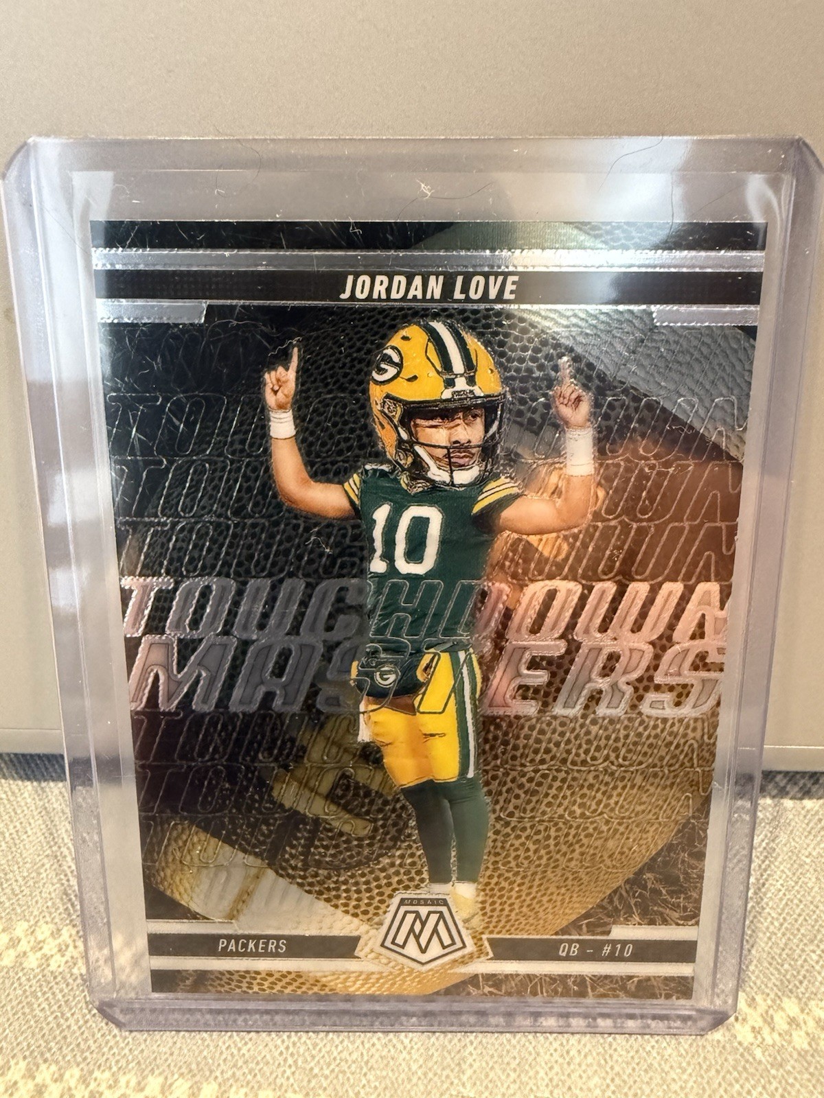 The 2025 Mosaic Touchdown Masters QB Bundle features three standard-sized football trading cards of talented athletes Bo Nix, Caleb Williams, and Jordan Love. Manufactured by Panini, these original cards are from the National Football League (NFL) and are made of card stock. The set includes insert cards. With exciting designs and features, this bundle is a must-have for anyone looking to add some flair to their sports trading card collection.