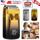 Description ★ Foil shaver: Easily and comfortably trims face, neck and chin. Safe and clean without hurting the skin. ★ Speed: The shaver has 3 speed adjustments. 6 500RPM at most. Give you a quick shave. ★ Pop-up trimmer: Easily and quickly trim longer beards and sideburns for you. Leaves your face refreshed and cleansed. ★ LED: The LED display clearly shows the remaining percentage of the battery. Reminds you to recharge your hair shaver. ★ Battery power: The shaver has a built-in 1 4 00mAh battery, which can be used for up to 1 2 0 minutes after charging for 2 hours. Product Details : Material: ABS Color: Gold /Sliver Power: 5 w Charging Time: 2 Hours Use Time: 120 Minutes Battery: Lithium Battery 14 00mAh Size: Approx. 12x6x3.8cm / 4.7*2.3*1.5inch What You Get : 1 * Men's Shaver 1 * Spare Shaving Head 1 * USB Charging Cable 1 * Clean Brush 1 * Protective C over 1 * Instruction manual