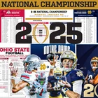 History! For sale, the game issued Flipcard and team program notes for the 2025 Ohio State vs Notre Dame College Football Playoff, National Championship Game, at Mercedes-Benz Stadium. Monday, January 20, 2025. Only given to media and broadcast for the game. The very first college football playoff championship game in this new format. The battle for CFP supremacy is real. GAME: CFP - National Championship - Notre Dame vs Ohio State DATE: January 20, 2025 TEAMS: Notre Dame vs Ohio State STADIUM: Mercedes-Benz Stadium LOCATION: Atlanta, GA What You Get: 1. (1) - Game Media Flipcard - 11x17 - Notre Dame vs Ohio State - double sided 2. (1) Notre Dame Program Media Insert - 8.5x11" - 2-pages 3. (1) Ohio State Program Media Insert - 8.5x11" - 1-page 4. Rigid Plastic protector - 11x17" ** WHY FLIPCARDS? I n the world in which there are no longer printed tickets and programs available, game Flipcards are really the only printed game item document left. They are the new take-home ticket. They provide all the game info like a ticket, but you also get rosters and other unique information to the game. Plus, they look awesome and are easy to display, show off! If you are looking for a ticket or program from the game, the media flipcard is better than both. It truly tells the story of the historic game. ** ** WHAT IS A FLIPCARD ACTUALLY USED FOR BY MEDIA AND BROADCAST? Flipcards actually play an important part in the game for media and broadcast. The large, oversized 11x17 double-sided information allows the broadcaster know and recognize the names and numbers of the players. Something challenging due to the far-away view from the press-box. Also, with the sheer amount of players on the field, media and broadcast need an easy one-stop shop for both teams rosters and information. ** HOW LONG HAVE FLIPCARDS BEEN USED? Flipcards have been used on-field going all the way back to the 1960's for media and broadcast. Flipcards are probably the last unique game-day item printed for ever game today in 2024. Seriously.
