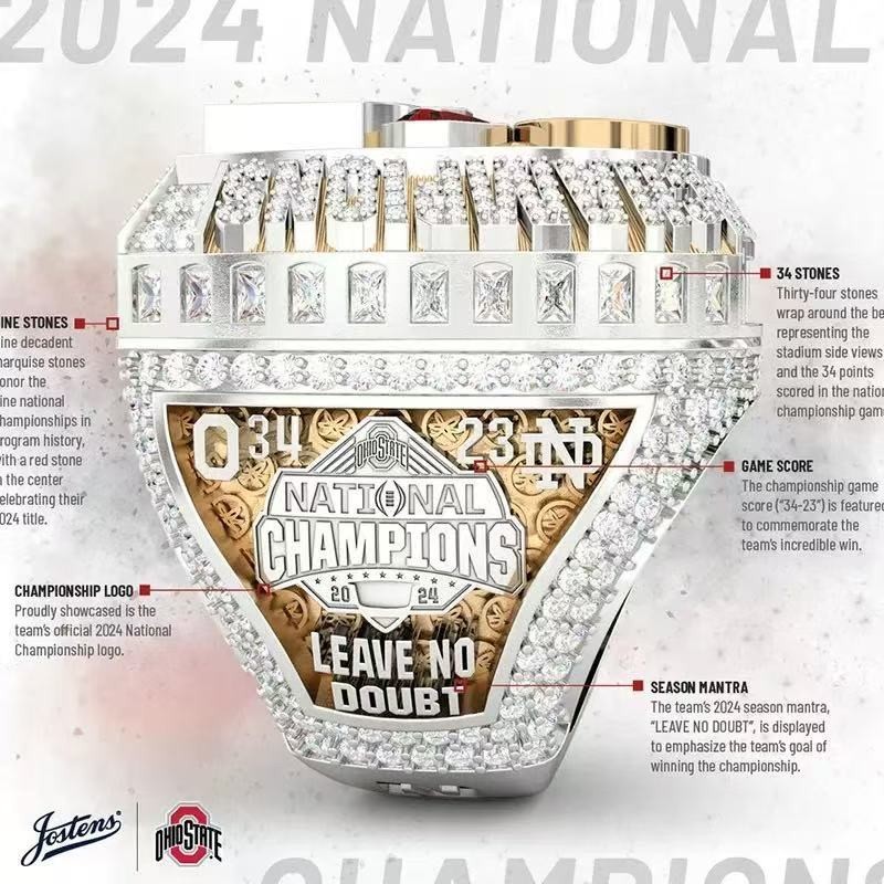 The 2025 Ohio State Buckeyes Championship Ring Size 11 is a silver ring that commemorates the NCAA Championship win by the Ohio State Buckeyes football team. This unisex adult ring is a perfect way for fans to show their support for the team and celebrate their victory. The ring is a symbol of pride and achievement, representing the hard work and dedication of the team and their fans. It is a treasured piece of memorabilia for any Ohio State Buckeyes fan.