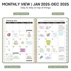 2025 Planner Overview: Our aesthetic planner covers the period from January to December 2025, featuring 12 monthly pages and 53 weekly pages to help you easily organize the entire year, making it an essential supply for office, home, and school. Monthly Planner: Features previous and next month reference calendars, major holidays reminders for long-term planning, daily writing blocks and a dedicated notes section for important projects. With monthly tabs and motivational quotes, it's designed to inspire and organize your life, work, or study. Weekly Planner: Our agenda book planner 2025 features each two-page weekly spread, from Monday to Sunday, offering ample lined writing space. It also includes popular holidays, two-month reference previews, and a dedicated priorities area, making it easy to manage appointments, notes, and daily tasks. Paper to Meet Your Needs: Our premium thick paper not only prevents ink bleeding, allowing you to use your favorite pen on the planner, but also provides a smooth writing experience. Distinct Design: The strong spiral binding ensures the planner's durability. It also offers dedicated sections for notes, a 2025-2026 yearly overview, holiday reminders, dual-pockets, and more, making it a perfect planner for women, men, teachers, and students.