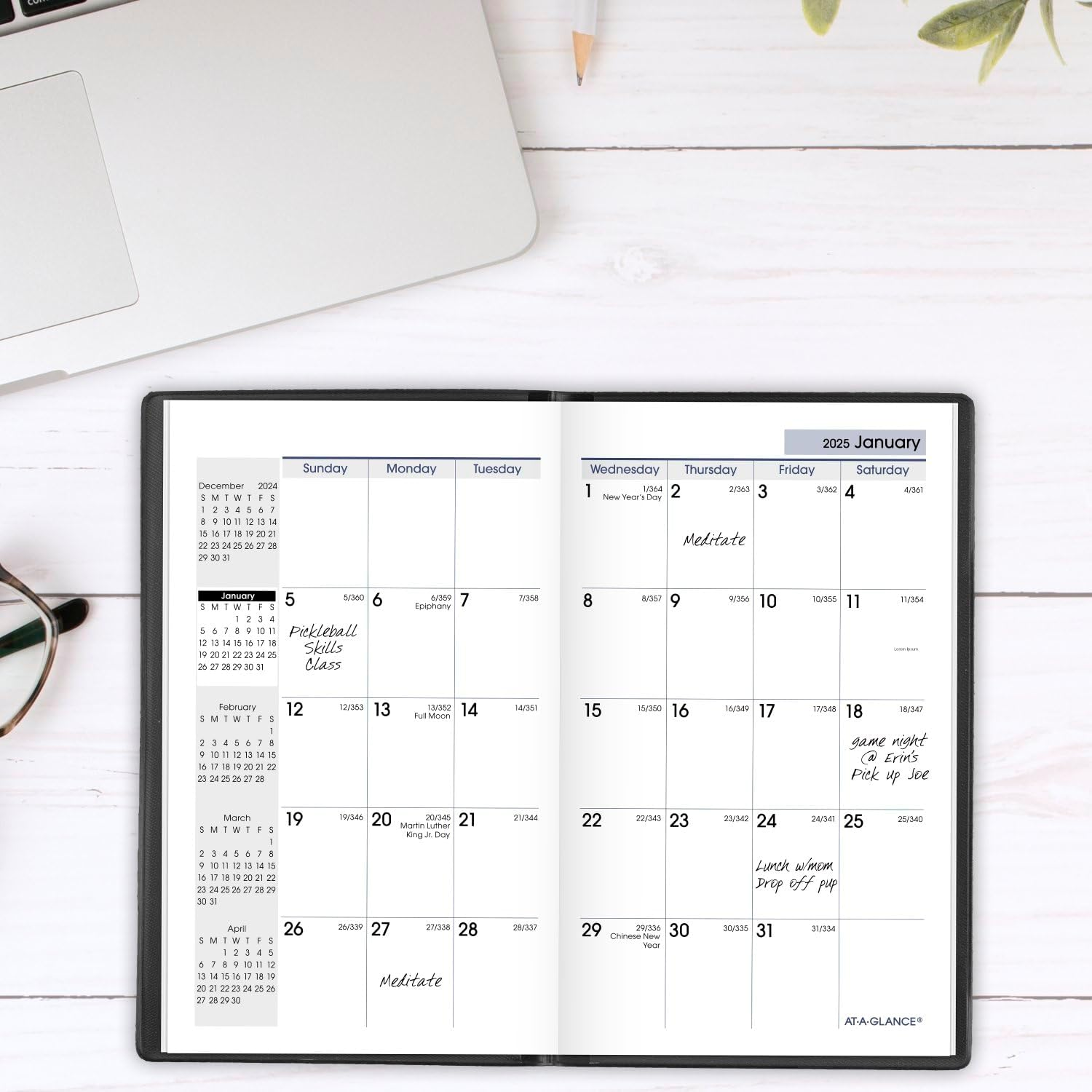 This planner is a game-changer for staying organized on the go! The compact size fits perfectly in my pocket or bag, yet the monthly layout gives me plenty of space to jot down important dates and tasks. The sturdy black cover holds up well to daily use, and the clear layout makes planning effortless. Perfect for busy professionals or students who need a reliable, portable way to track their schedule. Highly recommend!