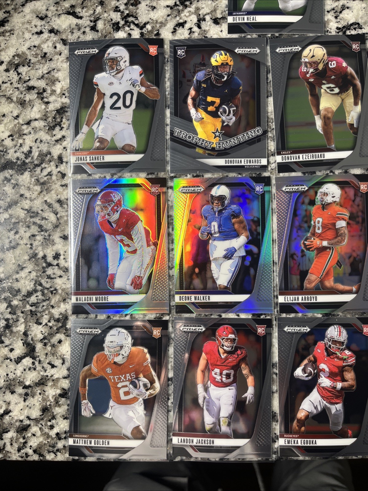 The product is a lot of 13 2025 Prizm Draft Picks rookie cards manufactured by Panini. These standard-sized sports trading cards are in English and feature rookie players from the 2025 season. They are made of card stock. These original cards are not vintage and make a valuable addition to any sports card collection.