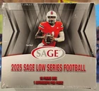 The product is a 2025 Sage Collectibles Football LOW Series Factory Sealed Hobby Box containing 16 autographed sports trading cards. It is part of the 2025 series focusing on National Football League (NFL) players. The box is manufactured by Sage Collectibles and is designed for collectors of football trading cards.