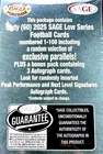 Qty. 1 - 2025 Sage Low Series Football Trading Cards - Blaster Box Features: Factory Sealed 60 cards per box Guaranteed 3 Autographs per box