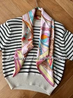 I love my gorgeous silk scarf which is more beautiful than the picture!! Exactly what I wanted and looks perfect with my sweater! I was amazed by how quickly it arrived— I got an excellent price on the scarf and on shipping, too! I will definitely keep this seller!! THANK YOU SO MUCH!!