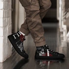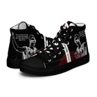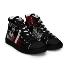 The "Soul Anthem High Top Men's UVelsi Shoes" are premium, unique sneakers designed by Uvelsi. These high-top sneakers feature a lace-up closure, cushioned insole, lightweight construction, and a rubber outsole. The classic edition shoes are handmade with a canvas upper and come in a solid black color. They are suitable for various occasions such as activewear, casual wear, and workwear, and are ideal for different activities like basketball, running, and gym training. Step up your shoe game with the High Top Canvas Shoes. These handmade, trendy shoes are sure to spice up your outfit. Get yours now! • 100% polyester, canvas upper side • Ethylene-vinyl acetate (EVA) rubber outsole • Breathable lining, soft insole • Faux leather toe cap • Padded collar, lace-up front • Soles and laces in matching colors Size guide preview (Imperial) US Men UK Europe Foot Length Japan Outsole Length 5 5 4 37.5 9 ⅛ 23 10 ¼ 6 6 5 38.5 9 ½ 24 10 ⅝ 7 7 6 40 9 ¾ 25 10 ¾ 8 8 7 41 10 ⅛ 26 11 ⅛ 9 9 8 42.5 10 ½ 27 11 ⅝ 10 10 9 44 10 ¾ 28 12.00 11 11 10 45 11 ¼ 29 12 ⅛ 12 12 11 46.5 11 ¾ 30 12 ¾ 13 13 12 47.5 12 31 12 ¾ 5.5 5.5 4.5 38 9 ¼ 23.5 10 ¼ 6.5 6.5 5.5 39 9 ⅝ 24.5 10 ⅝ 7.5 7.5 6.5 40.5 10.00 25.5 11 ⅛ 8.5 8.5 7.5 42 10 ¼ 26.5 11 ⅜ 9.5 9.5 8.5 43 10 ⅝ 27.5 11 ⅝ 10.5 10.5 9.5 44.5 11.00 28.5 12 ⅛ 11.5 11.5 10.5 46 11 ½ 29.5 12 ½ 12.5 12.5 11.5 47 11 ⅞ 30.5 12 ¾ Size guide preview (Metric) US Men UK Europe Foot Length Japan Outsole Length 5 5 4 37.5 23.2 23 26.2 6 6 5 38.5 24.1 24 27 7 7 6 40 24.8 25 27.3 8 8 7 41 25.7 26 28.3 9 9 8 42.5 26.7 27 29.5 10 10 9 44 27.3 28 30.5 11 11 10 45 28.6 29 30.8 12 12 11 46.5 29.9 30 32.4 13 13 12 47.5 30.6 31 32.4 5.5 5.5 4.5 38 23.5 23.5 26.2 6.5 6.5 5.5 39 24.5 24.5 27 7.5 7.5 6.5 40.5 25.4 25.5 28.3 8.5 8.5 7.5 42 26 26.5 29 9.5 9.5 8.5 43 27 27.5 29.5 10.5 10.5 9.5 44.5 28 28.5 30.8 11.5 11.5 10.5 46 29.2 29.5 31.8 12.5 12.5 11.5 47 30.2 30.5 32.4